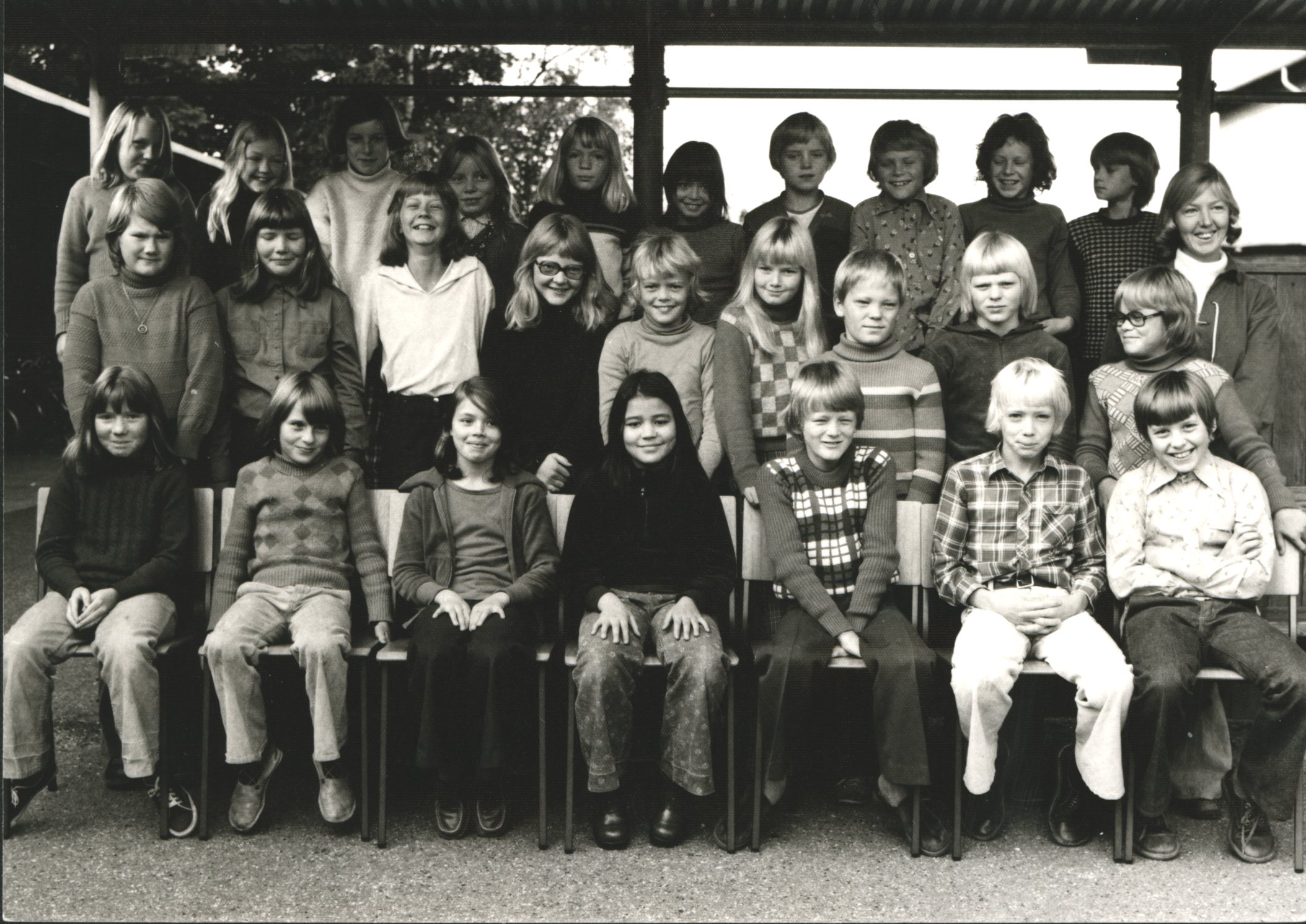 | Bagerste række: 10 elever - ingen navne kendte. I midterste række: 9 elever - ingen navne kendte. Yderst til højre mellem midterste og bagerste række lærer Kirsten Bertelsen. Forreste række fra venstre: Nr. 4 Eva Svarre, nr. 6 ? Prip, nr. 7 Claus ? Kender du navne på eleverne - send en e-mail til Mårslet Egnsarkiv. Egnsarkivet er også interesseret i at få at vide hviken klasse der er fotograferet og hvilket år. Billede på Mårslet Egnsarkiv. Registreret i Arkibas. Billed ID: B2930 | |
