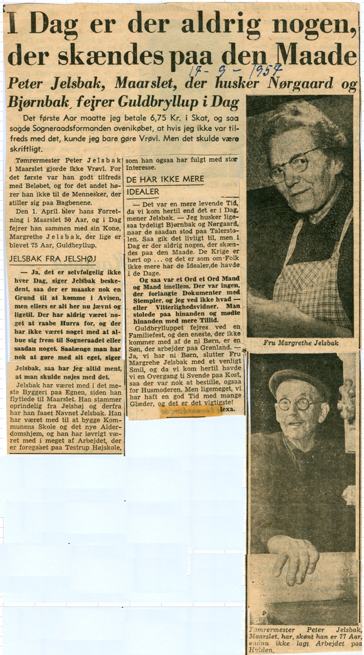 Margrethe og Peter Jelsbak. Guldbryllup. 17. september 1957.