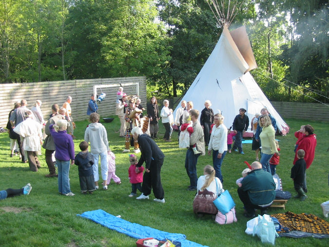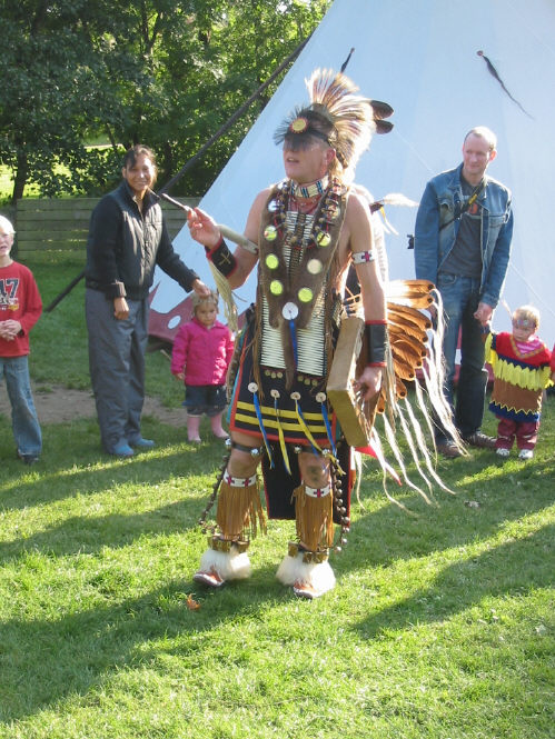 | Mårslets dagplejemødre afholdt fredag 7. oktober indianerdag på arealerne neden for Midgård. De mange Amilier, Frederikker og Sofier var festligt påklædt i deres hjemmelavede indianerudstyr. Høvdingen Jens medbragte tipi og slagtøj og lærte både de menige små indianere og deres forældre at danse en rigtig krigsdans. foto: ©Kaj Christensen