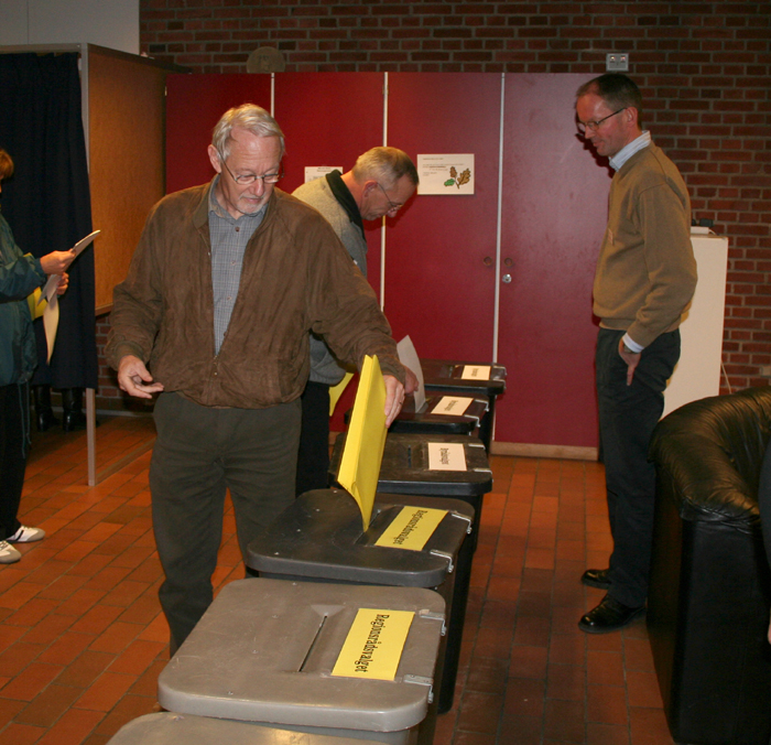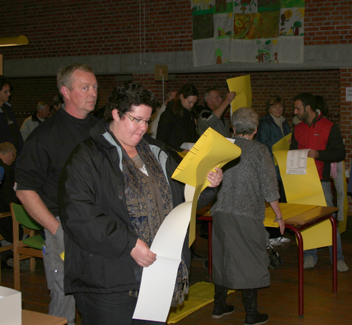| Hen mod kl. 19 var der trængsel ved valgstedet på Mårslet skole. Måske skulle der tænkes mere end normalt ved et valg. Vi får så se, hvor gode vi er til at tænke. foto: ©2005 Kurt Søe