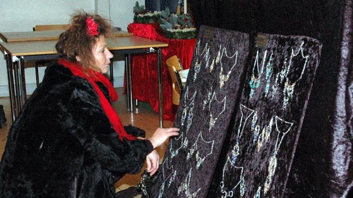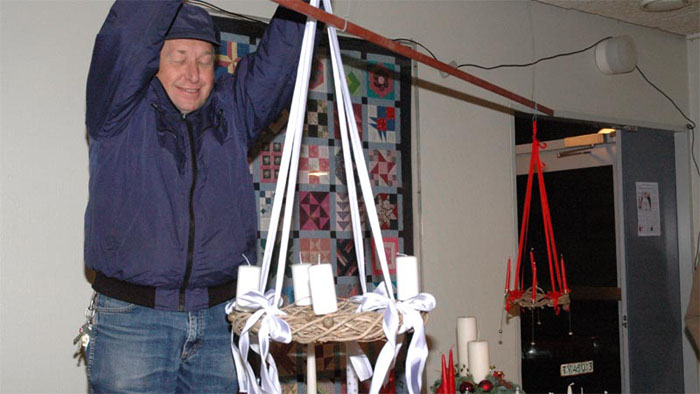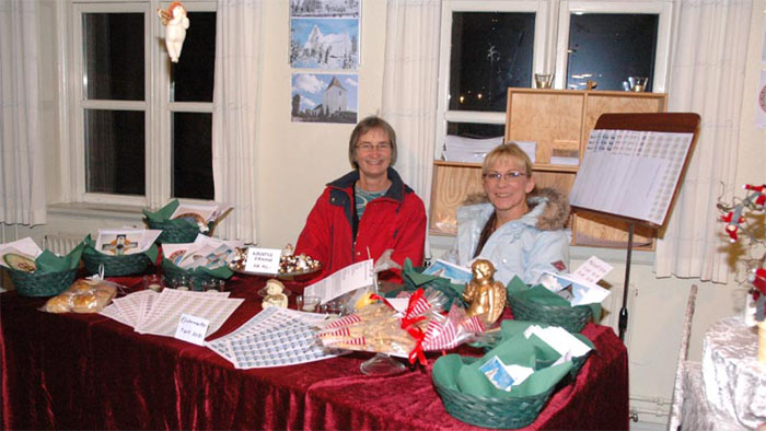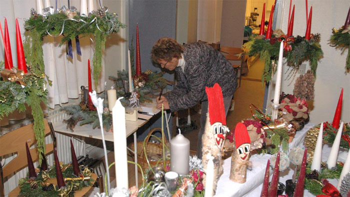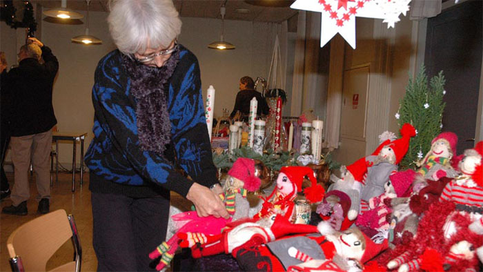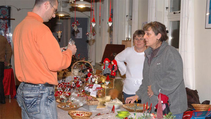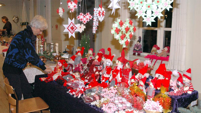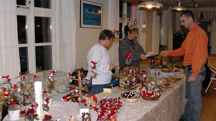 | Så er der igen julemarked i Mårslet. Fredag aften d. 25. nov. lignede Borgerhuset noget nær en eksplosion i en juleforretning med nisser, adventskranse, et hav af juledekorationer, nisser, smykker, bøger, bagværk, julekort og meget andet, da stadepladserne blev etablerede. Markedet er åbent lørdag fra kl. 10-18 og søndag fra kl. 10-15 og der er mulighed for at købe kaffe, the, sodavand, øl samt glögg og æbleskiver i julestuen. foto: © 2005 Jørgen Lauritsen