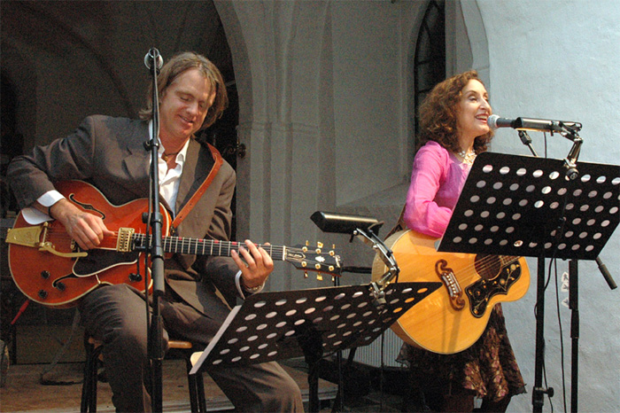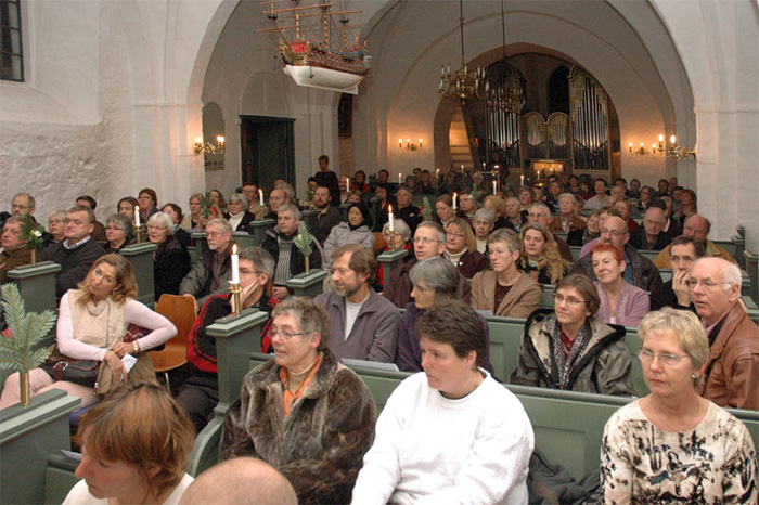 | Julen blev sunget ind i en næsten fyldt Mårslet kirke ved koncerten med TAMRA ROSANES mandag aften d. 19. december. På repertioret var "Oh, come all ye faithful" til de nyere "White Christmas" og "Jingle bell rock". Og publikum sang med på "Silent night", da Tamra Rosanes efter et par vers slog over på dansk med "Glade jul". Ved koncerten blev hun akkompagneret af guitaristen LARS KRARUP. En stemningsfuld aften i Mårslet Kirke. foto: ©2005 Jørgen Lauritsen