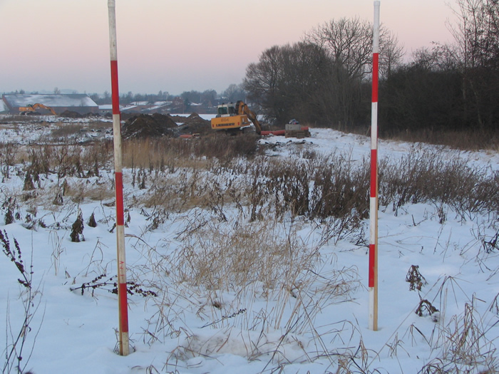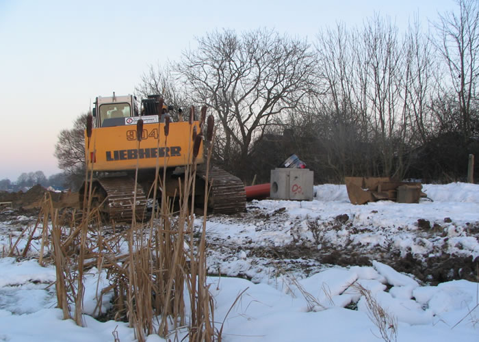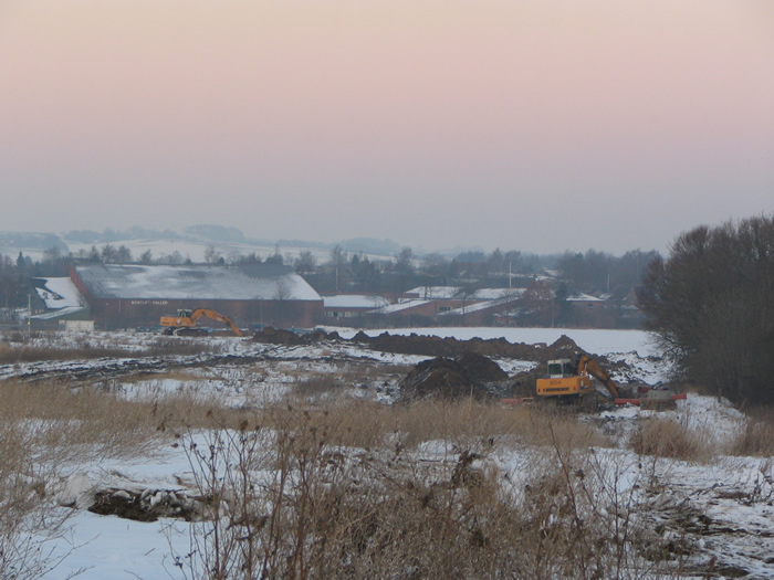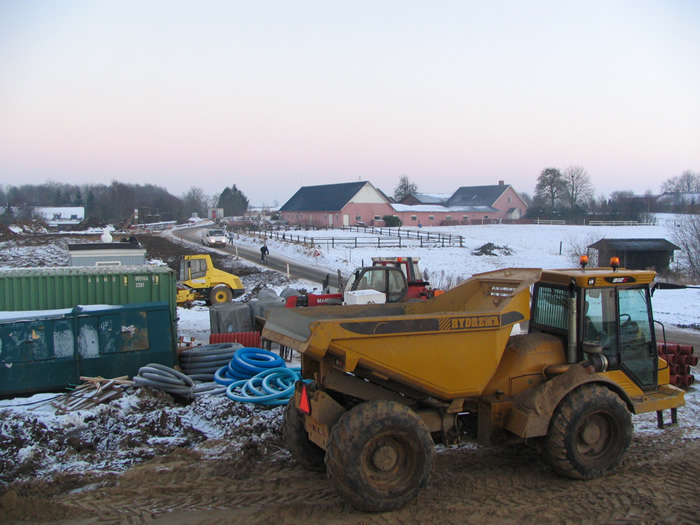 | De nye huse bag Agervej og Ovesdal SKAL eller VIL frem, og maskiner og mænd trodser både kulde og mørke for at bygge. Naturen holder stand endnu, men dunhamrenes dage ser ud til at være talte. foto: ©2006 Keld Schmidt-Møller