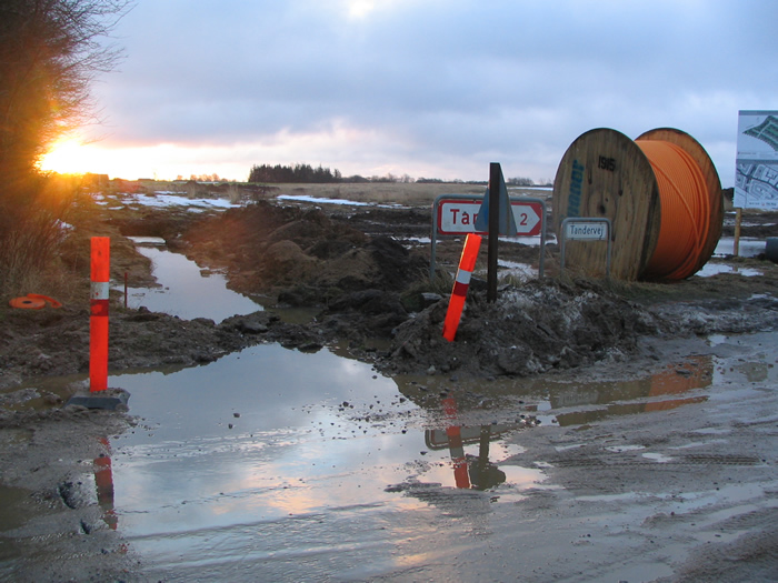| Nogle vil sikkert betragte den vældige byggeaktivitet syd for byen som opløftende. Andre ser mest mudderet og al vandet og savner måske frosten, som lagde en beskyttende hinde hen over landskabet. Men byggemodnet, det bliver der i hvert fald! foto: ©2006 Keld Schmidt-Møller