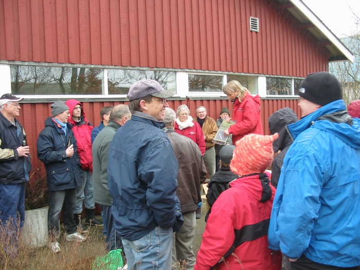 | Efter veludført rengøring af hovedstrøgene og byens indfaldsveje, overhøre de ca. 50 frivillige grøn guide Birthe Buhls råd og anvisninger om bekæmpelse af den ibiriske snegl (Dræbersneglen), som store dele af Mårslet kun kender alt for godt. foto: ©2006 Kaj Christensen