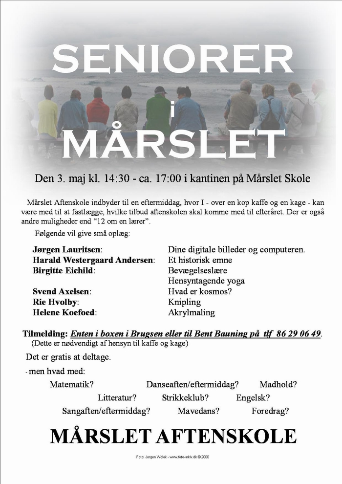 | Mårslet Aftenskole indbyder til en eftermiddag, hvor I kan være med til at fastlægge, hvilke tilbud der skal komme med til efteråret. foto: © 2006 Jørgen Lauritsen