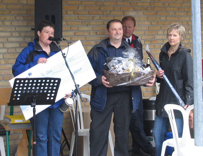 | Hanne og Poul Erik Salling Jensen blev i formiddags kåret som årets mårslettere. Kim Rasmussen, der selv blev udnævnt som årets mårsletter for to år siden, forestod udnævnelsen foran et forholdsvis lille publikum på det forblæste butikstorv. Men stor var glæden både hos de tilstedeværende tilskuere og hos Hanne og Poul Erik Salling Jensen, der modtog en check fra Nordea samt en stor "købmandskurv". foto: ©Birthe Jørgensen Læs Kim Rasmussens overrækkelsestale under billederne.