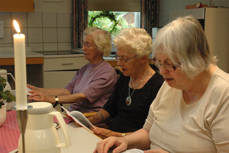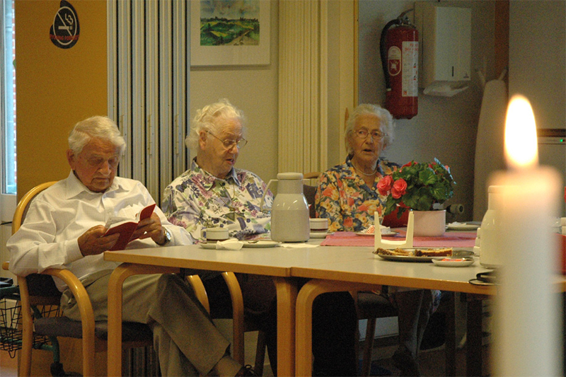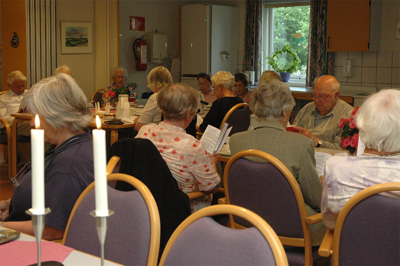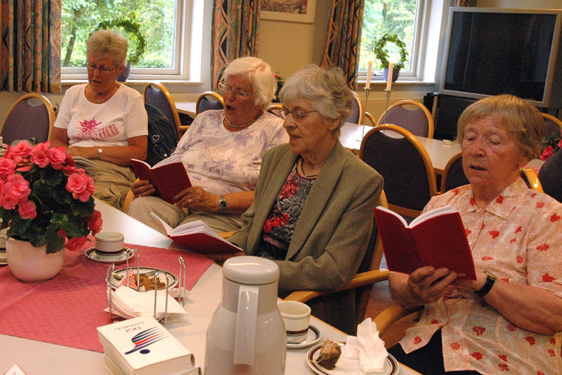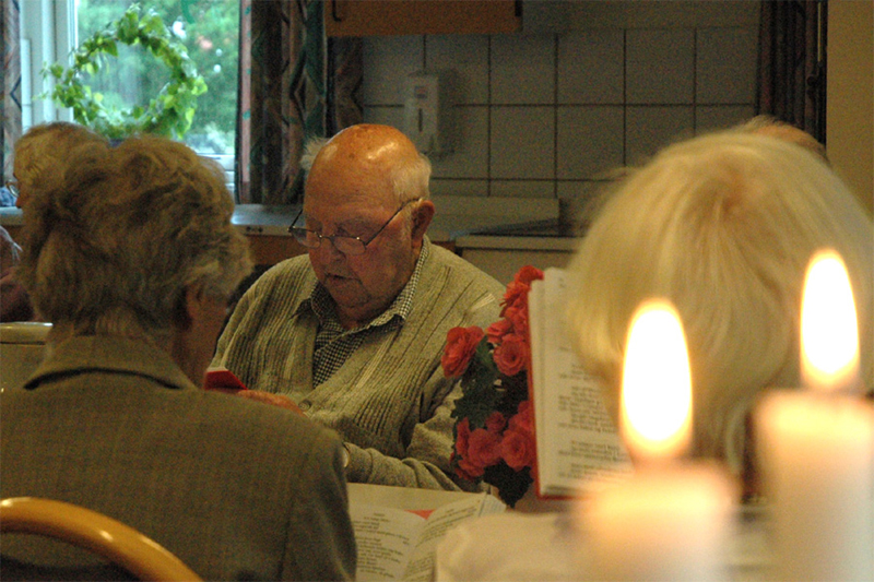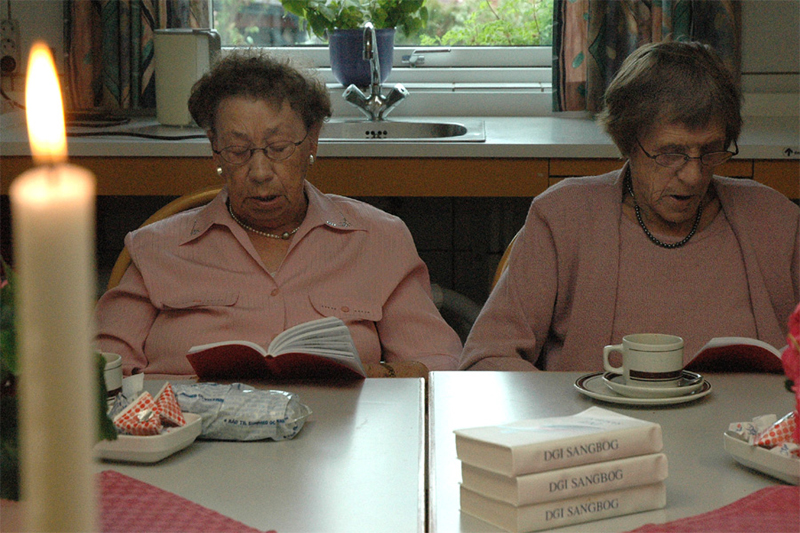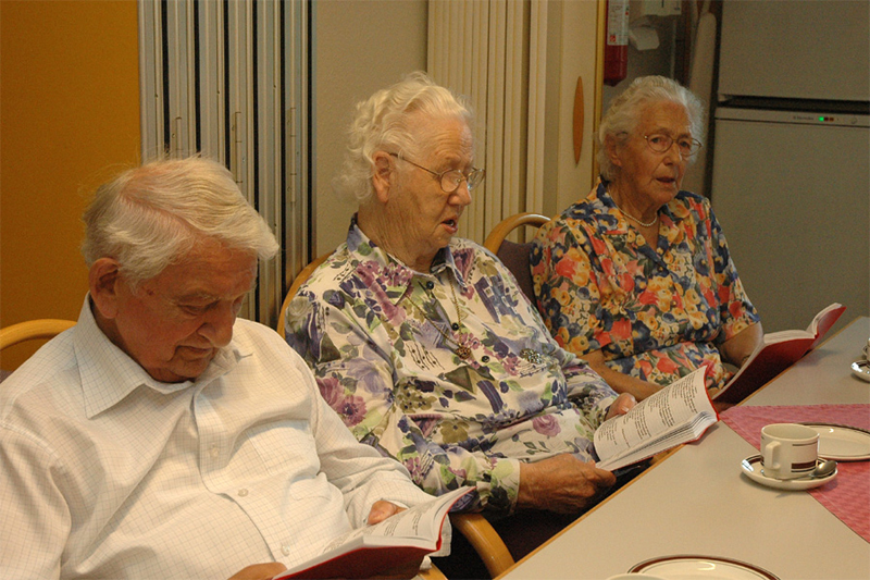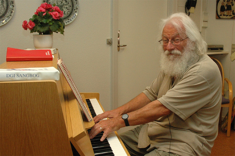 | Han er kendt på plejehjem og på lokalcentre for sine "syng-med-eftermiddage". Og onsdag d. 14. juni om eftermiddagen var han på Kildevang. Navnet er Josser Herold. Han fortæller, at han har gjort "syng-med" til sin hobby, og nyder den glæde, der lyser ud af de ældre, når de kendte og populære sange er på repertoiret. Et repertoire som de ældre iøvrigt også selv er medbestemmende på. Billederne er fra denne hyggelige eftermiddag i dagligstuen på Kildevang. foto: © 2006 Jørgen Lauritsen