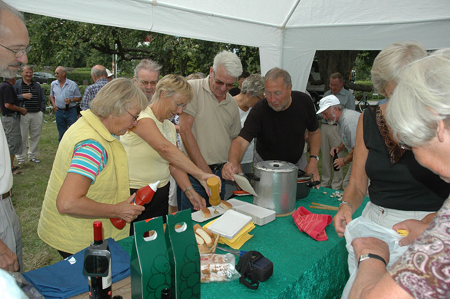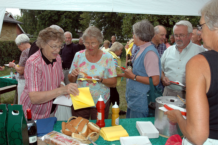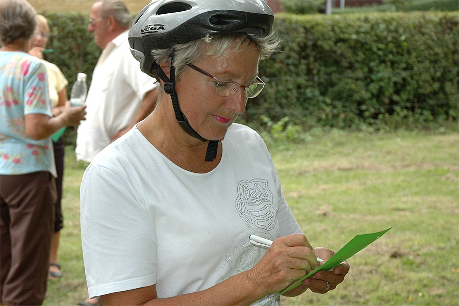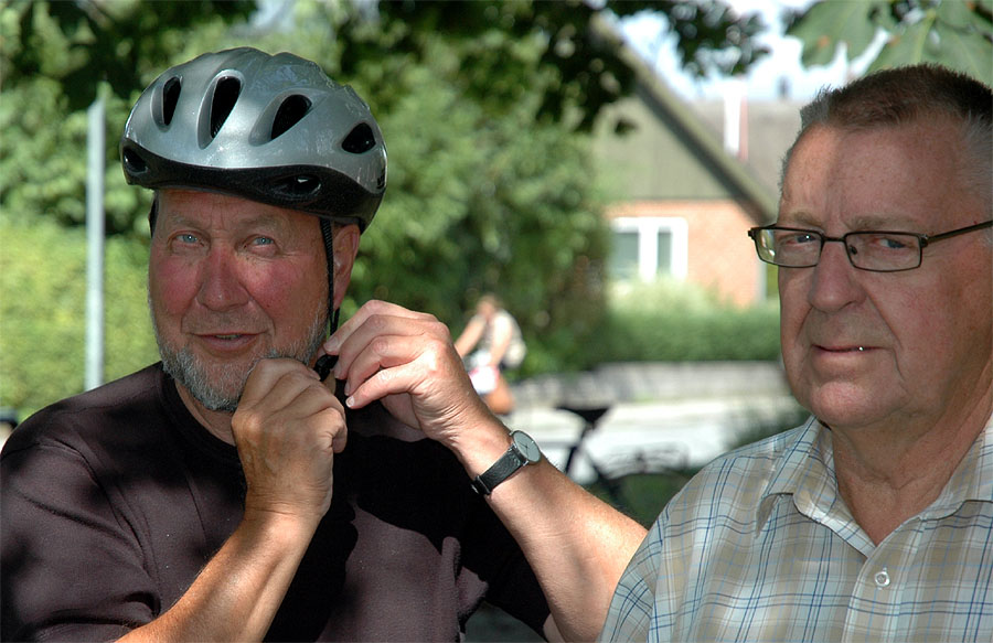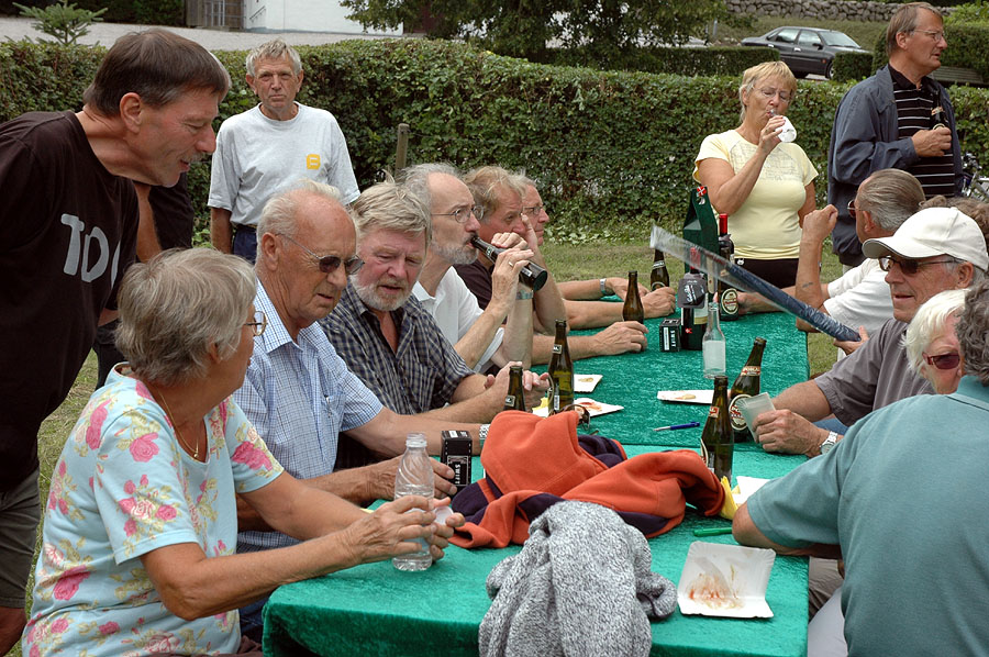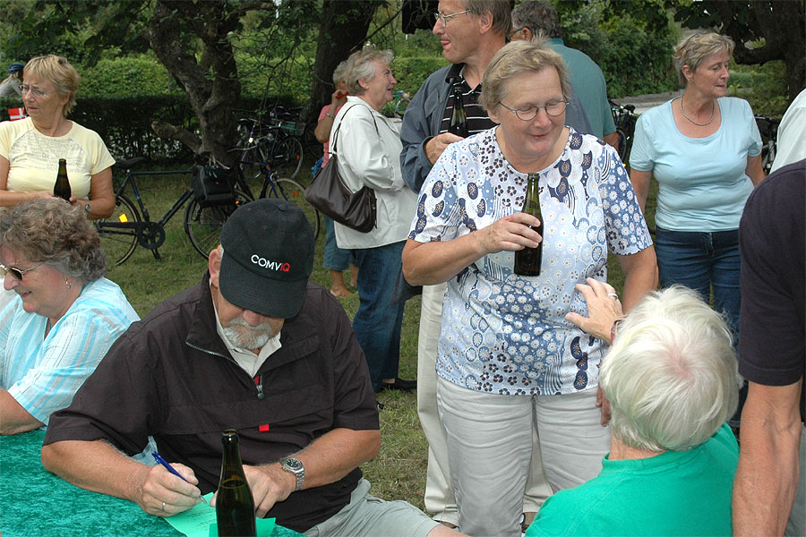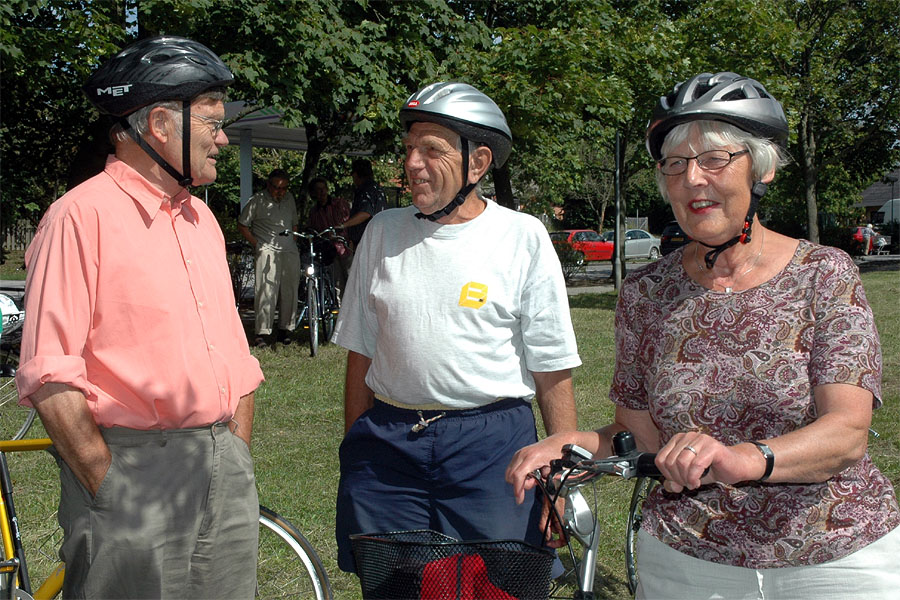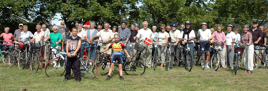 | 45 kvikke mårslet-seniorer var i eftermiddags mødt frem i Bomgårdshaven, for sammen at indlede byfesten med en overkommelig cykeltur over Højballe, Hørret og så hjem til Bomgårdshaven, en tur på bare 4,7 km. Dagen til at tyvstarte Mårslet Byfest var valgt godt - det holdt tørvejr hele vejen og for den sags skyld hele dagen. Ved hjemkomsten var der øl og varme røde pølser, snak og lodtrækning om de mange sponsorgaver fra Nordea Bank, Juletræslauget og Sport-Direcht. Tak til de mange oplagte seniorer, der deltog i denne cykeltur. Det blev en dejlig oplevelse /KC foto: ©2006 Jørgen Lauritsen