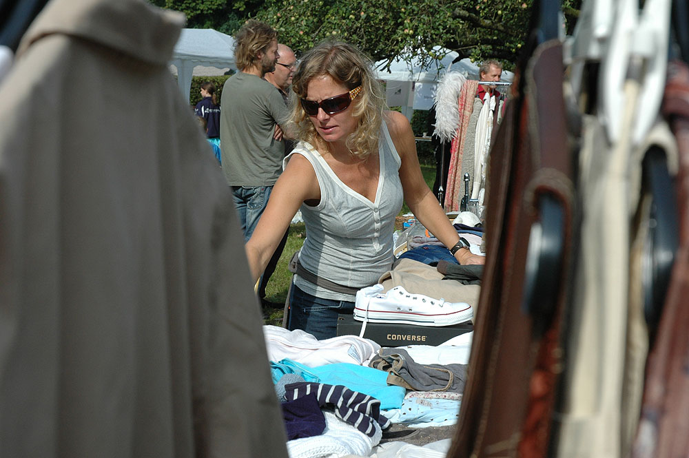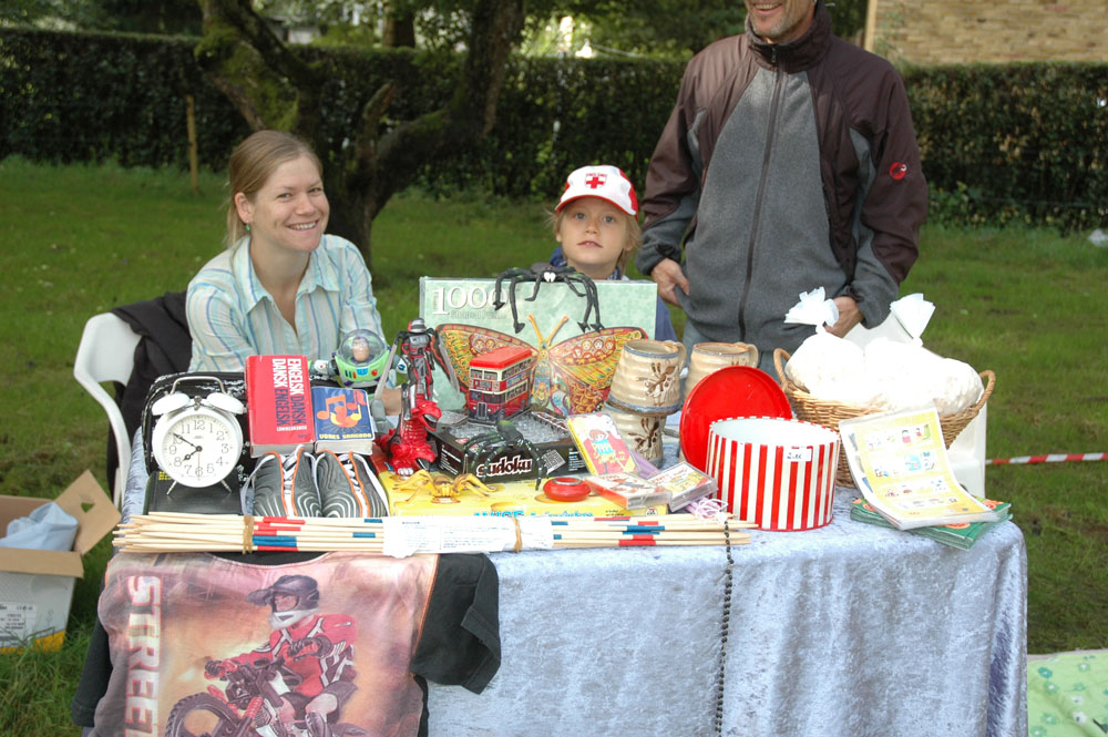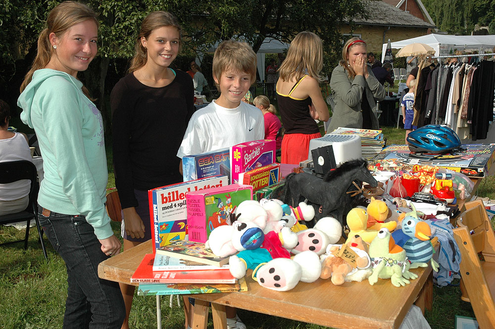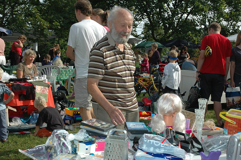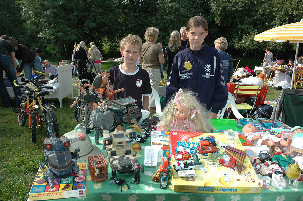 | Lørdagens kræmmermarked i byfesten er en uomgængelig succes. Antallet af boder er stort, effekterne, der er til salg, er af høj kvalitet, og omsætningen er tårnhøj - hvilket kun kan lokke endnu flere til at deltage næste år. På den måde virker en god spiral ... Selv vejrguderne holdt en beskyttende hånd over kræmmermarkedet. Det regnede om morgenen, det regnede om eftermiddagen, men under kræmmermarkedet strålede solen om kap med de glade ansigter. foto: © 2006 Jørgen Lauritsen