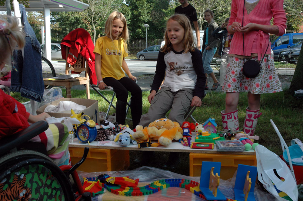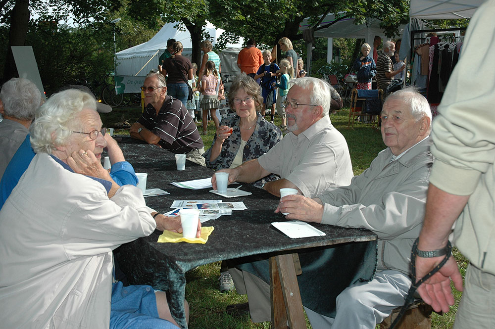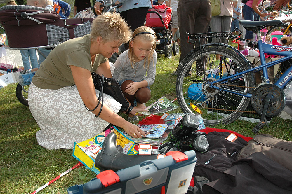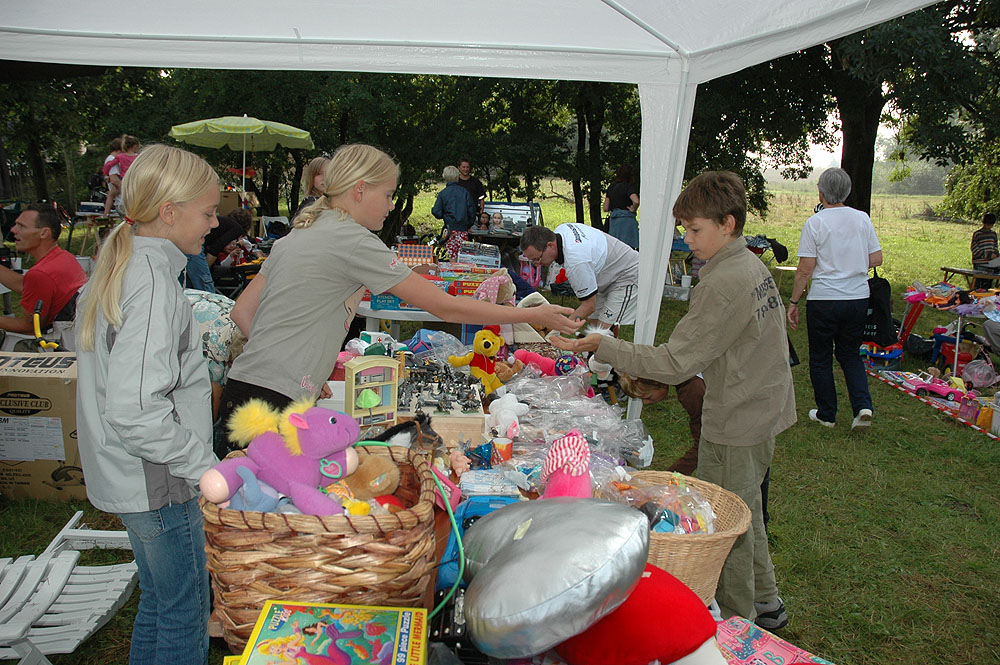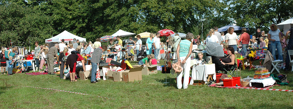 | Lørdagens kræmmermarked i byfesten er en uomgængelig succes. Antallet af boder er stort, effekterne, der er til salg, er af høj kvalitet, og omsætningen er tårnhøj - hvilket kun kan lokke endnu flere til at deltage næste år. På den måde virker en god spiral ... Selv vejrguderne holdt en beskyttende hånd over kræmmermarkedet. Det regnede om morgenen, det regnede om eftermiddagen, men under kræmmermarkedet strålede solen om kap med de glade ansigter. foto: © 2006 Jørgen Lauritsen