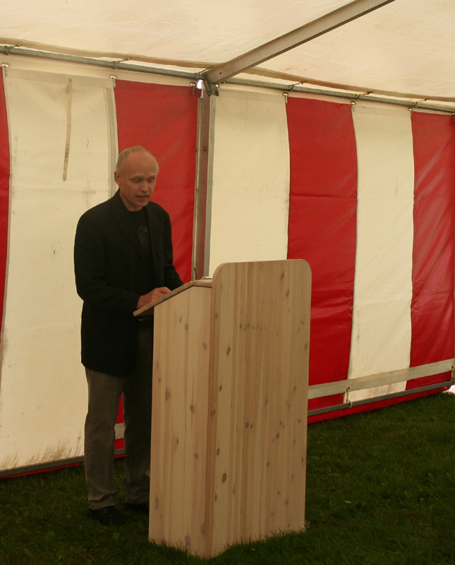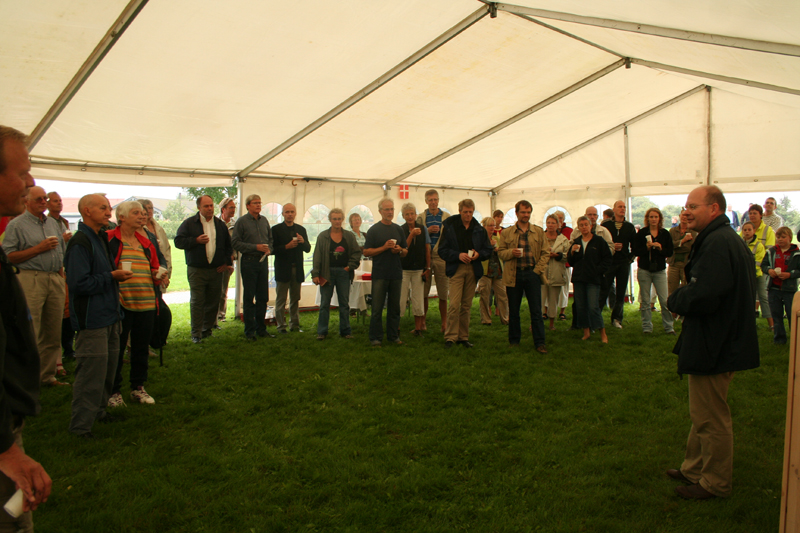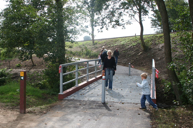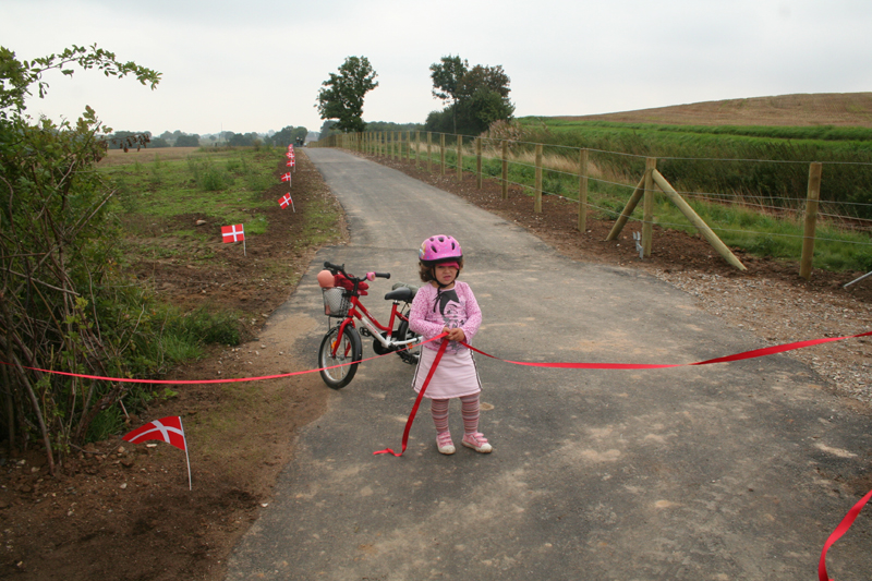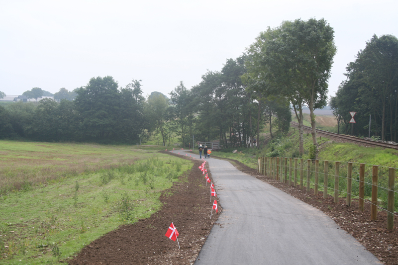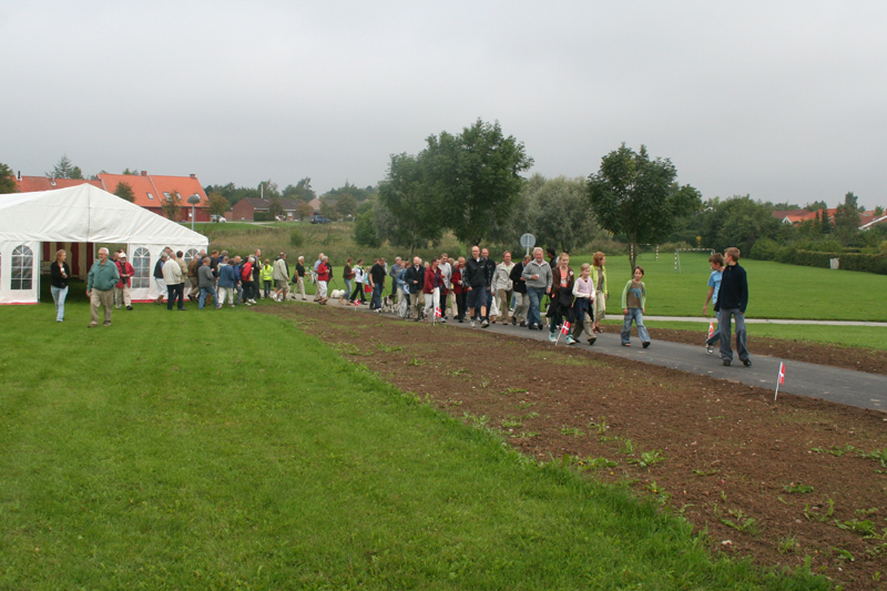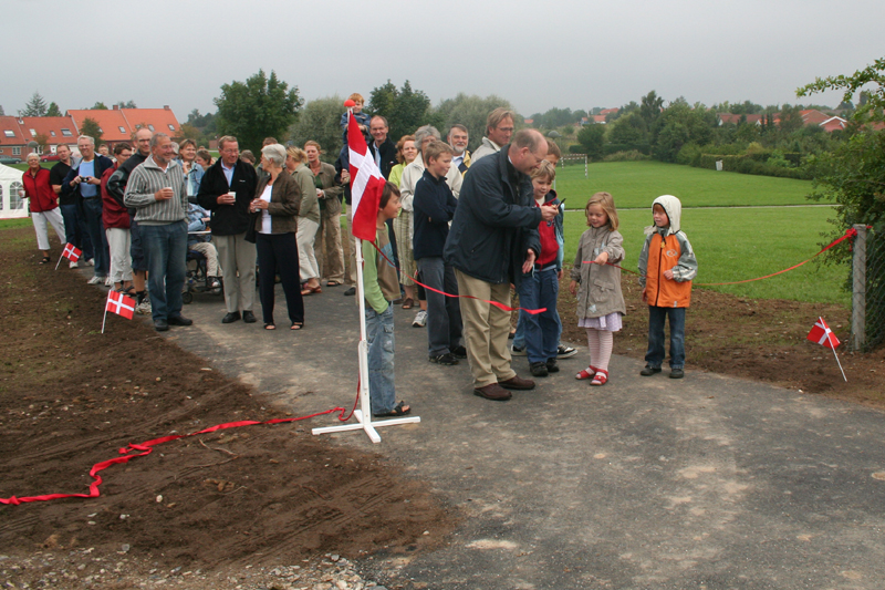 | Rådmand Peter Thyssen klippede snoren til den nye sti til trinbrættet ved Vilhelmsborg. Det var en god flok folk fra byen, der valgte at indvie stien. Den løser nok ikke alle byens trafikproblemer, men er et fint lille indslag i stisystemet. foto: ©2006 Kurt Søe