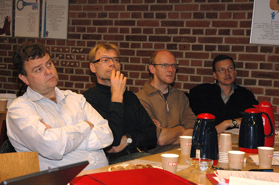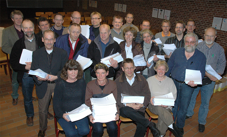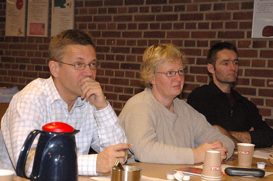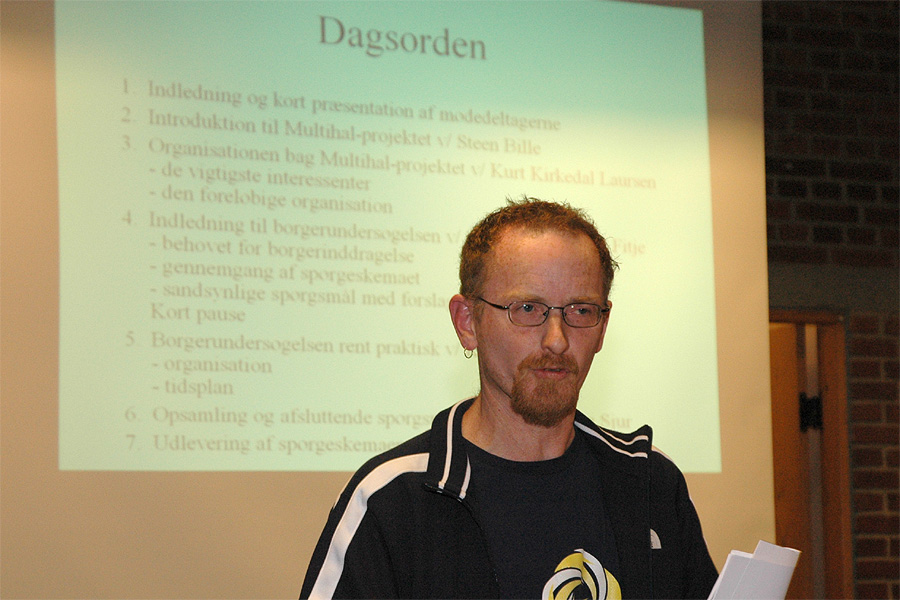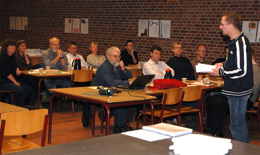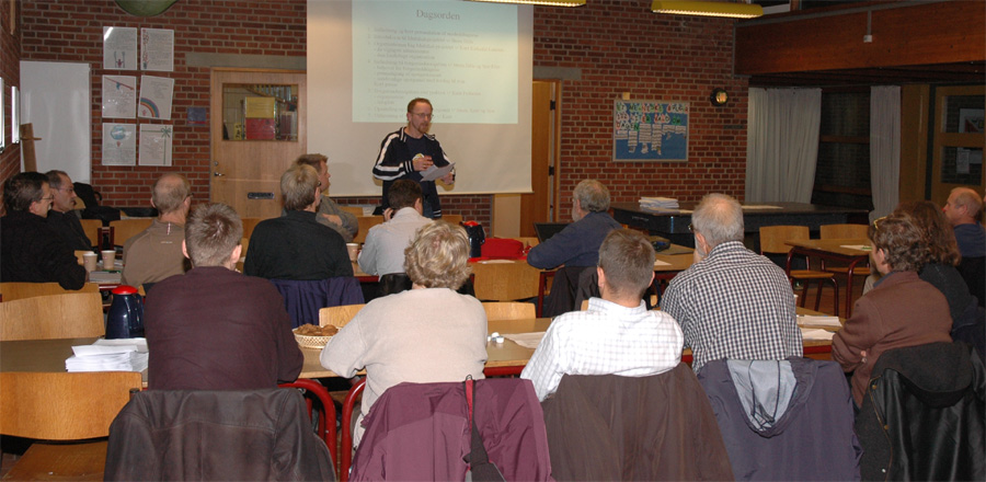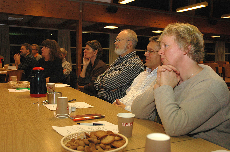 | I går mødtes de i alt 40 mennesker, der har sagt til at give fire-seks timer af deres tid til at uddele og indsamler skemaerne. Mødet foregik i skolens kantine, hvor de fremmødte fik en status for Projekt Multihal i Mårslet samt information om organisationen bag projektet og om selve undersøgelsen. foto: © 2006 Jørgen Lauritsen