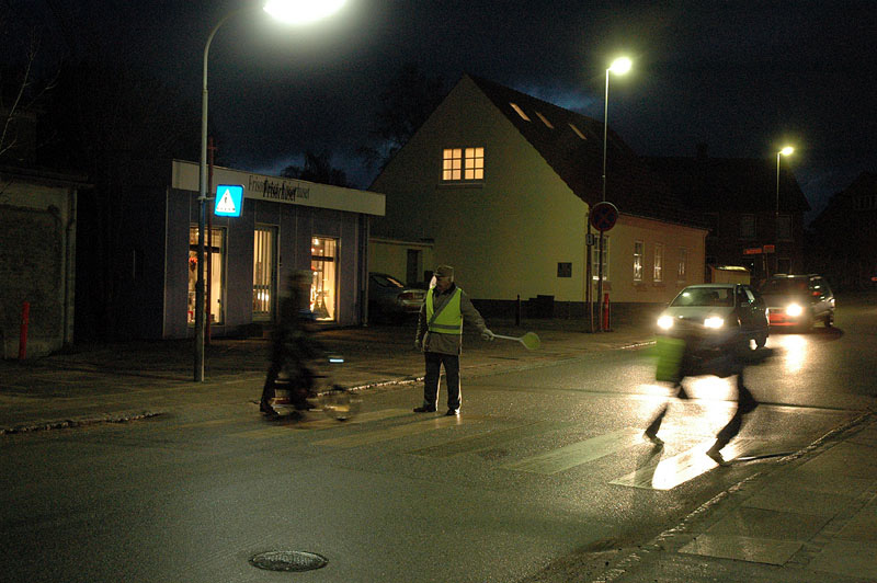 Mørketid | Den mørke tid er for alvor over os, så det gælder om at se lyspunkterne, når de er der. Og de ER der. Se bare på juletræet foran kirken med de mange funklende lys. Og ikke langt derfra: Trafikvagten, der lidt før kl. 8 hver morgen hjælper de mange, store og små, sikkert gennem trafikmylderet. Og så, få dage før juleaften, går vi igen mod lysere tider..... foto: © 2006 Jørgen Lauritsen