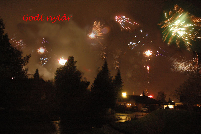 | Så kom vi ind i 2007. Lidt atypisk med hensyn til vejret med regn og blæst, men det lagde tilsyneladende ikke nogen mærkbar dæmper på fyrværkeri-aktiviteterne omkring årskiftet kl. 24. foto: © 2007 Jørgen Lauritsen