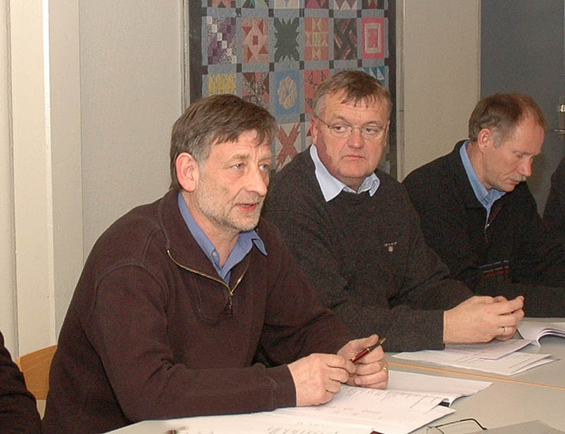 | På Mårslet Vandværks ordinære generalforsamling i Borgerhuset onsdag aften den 21. marts lagde formanden, Willy Tang, i sin beretning bl.a. vægt på vigtigheden af, at forbrugerne gør sig bekendte med, hvor deres stophane er anbragt. Og er man usikker, vil vandværket gerne være behjælpelig med at finde den. Efter formandens beretning aflagde kassereren Karl Jørgen Jensen regnskabet. Begge blev godkendt. Der var genvalg over hele linien, og bestyrelsen består herefter af Willy Tang, formand, Hugo Kristensen, næstformand, Karl Jørgen Jensen, kasserer samt bestyrelsesmedlemmerne Preben Holdensgaard og Robert Stensgaard. Dirigent og ordstyrer var Per Enevoldsen. foto: © 2007 Jørgen Lauritsen