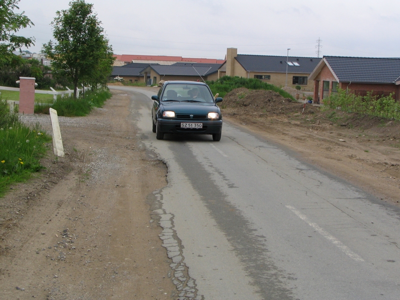 | På fællesrådets opfordring har Trafik og Veje inspiceret Mustrupvej og taget kontakt til et asfaltfirma der inden for kort tid vil lave kantforstærkning på en del af vejstykket fra Tandervej til 90 graders svinget. Ved en kantforstærkning forstås en asfaltbane langs kørebanekanten foto: ©2007 Keld Schmidt-Møller