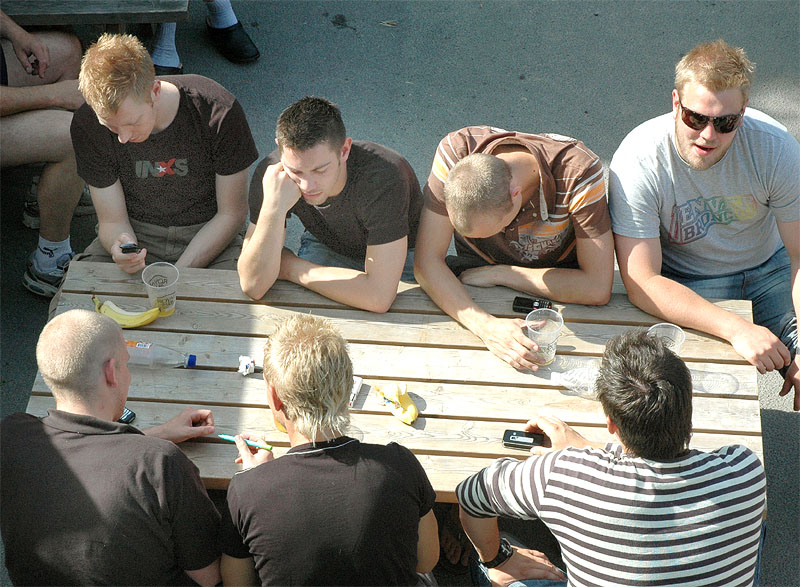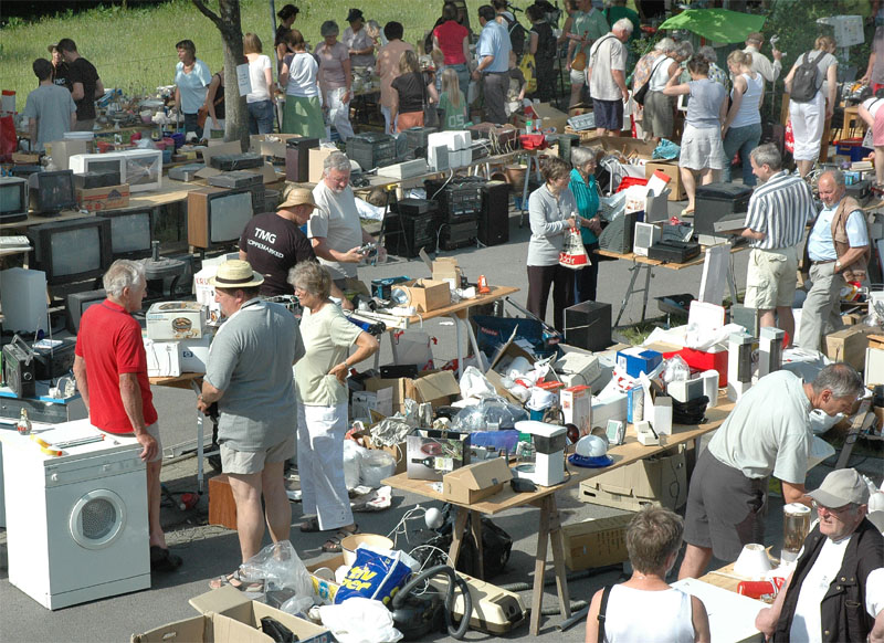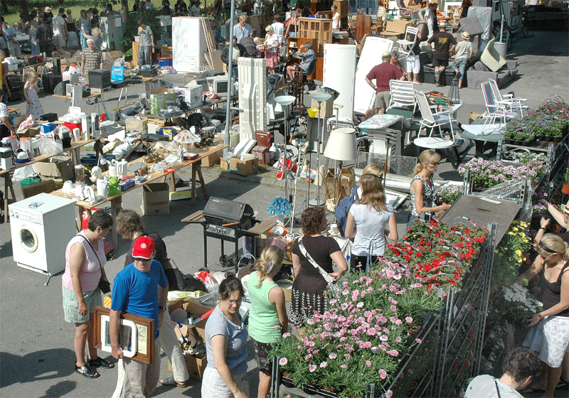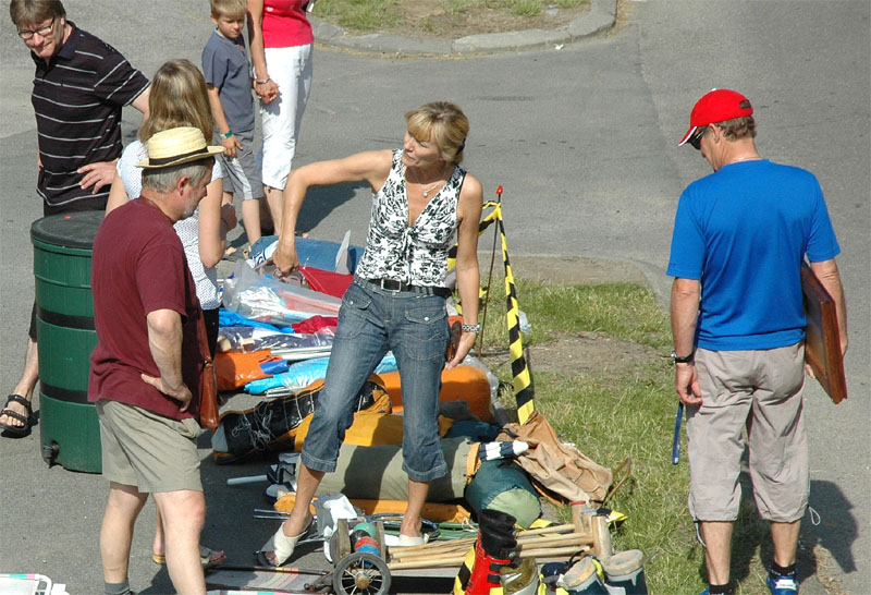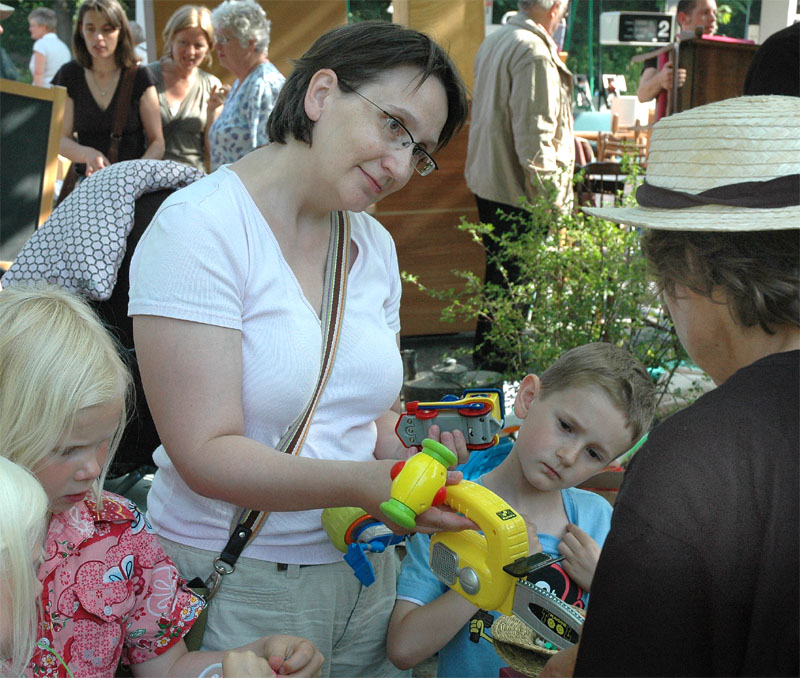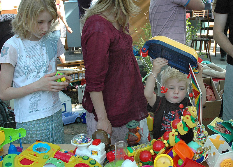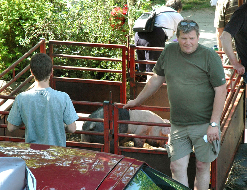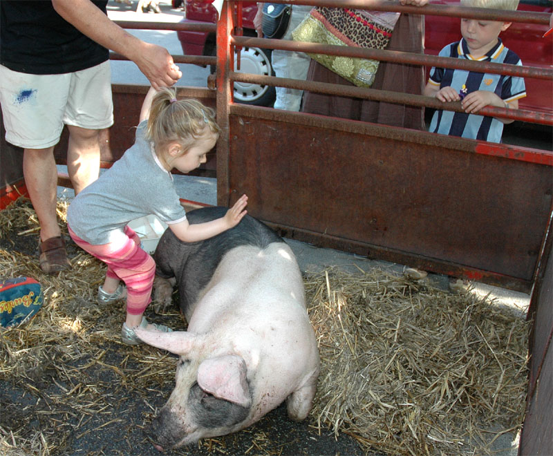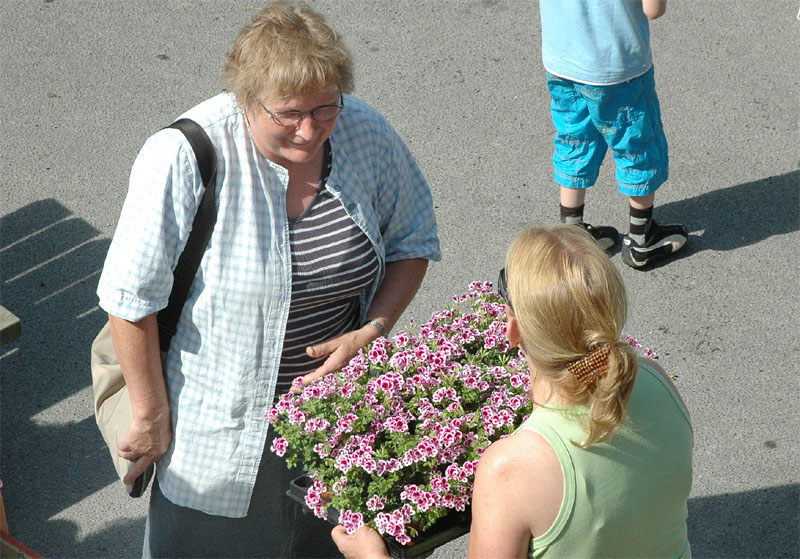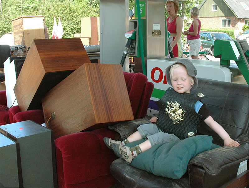| Der var ikke rigtig mulighed for at få benzin til andet end græsslåmaskinen, men så var der til gengæld mulighed for at gøre en god handel, gætte på grisens vægt eller bare nyde denne særlige stemning, når TMG holder sit årlige loppemarked ved OK-tanken. Helt fra morgenstunden var markedet godt besøgt, det fantastiske sommervejr havde sikkert lokket mange, både børn og voksne til. Og der var mange muligheder for at finde noget nyt legetøj, et extra TV, eller den kommode man altid har manglet. Grisen gik og hyggede sig uden at bekymre sig om sin skæbne, mens folket gættede kilo og gram. Der var syv, der havde gættet grisens vægt rigtigt, 89 kg, og efter en lodtrækning - med Emilie fra 2.b som Lykkens Gudinde - blev det familien Albertsen, Visbjerg Hegn, der løb med den. De er dygtige (eller heldige) i den familie, for det er anden gang de vinder! - De samlede gætterier gav et resultat på 3.700 kr. Det var de omkring 50 frivillige indsamlere og sælgere, der totalt sørgede for en rekordomsætning på ca. 77.000 kr. Nettoresultatet lå på godt 50.000 kr. foto: © 2007 Jørgen Lauritsen