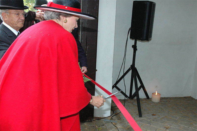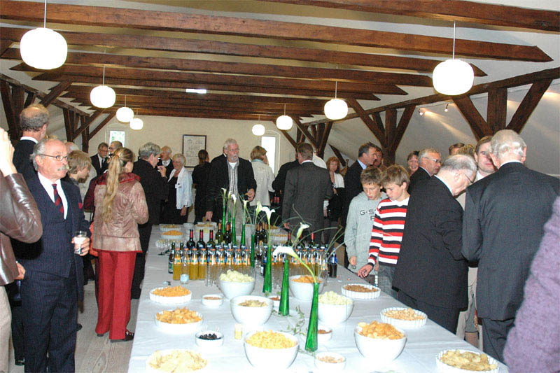 | Genindvielsen af den gamle herskabsstald fra 1856 fandt sted under stor bevågenhed fredag den 13. september. Det var HKH prinsesse Benedikte - ankommet i en landauer fra de kongelige stalde - der klippede snoren. Efter indvielsen var der reception på 1. sal i det smukt 250 m² restaurerede mødelokale med taler af bl.a. formanden Bent Neergaard; borgmester i Århus, Nikolai Wammen; HKH prinsesse Benedikte og bestyrelsesmedlem i foreningen Vilhelmsborg, Ivan Dybvad. Det er Hippologisk Selskab har forestået istandsættelsen med arkitekt Ib Møller, men som dog kun er muliggjort ved mange velvillige sponsorater fra bl.a. Århus Kommune og A.P. Møller og hustru Chastine Mc. Kinney Møllers Fond for almene Formål. foto: ©2007 Jørgen Lauritsen