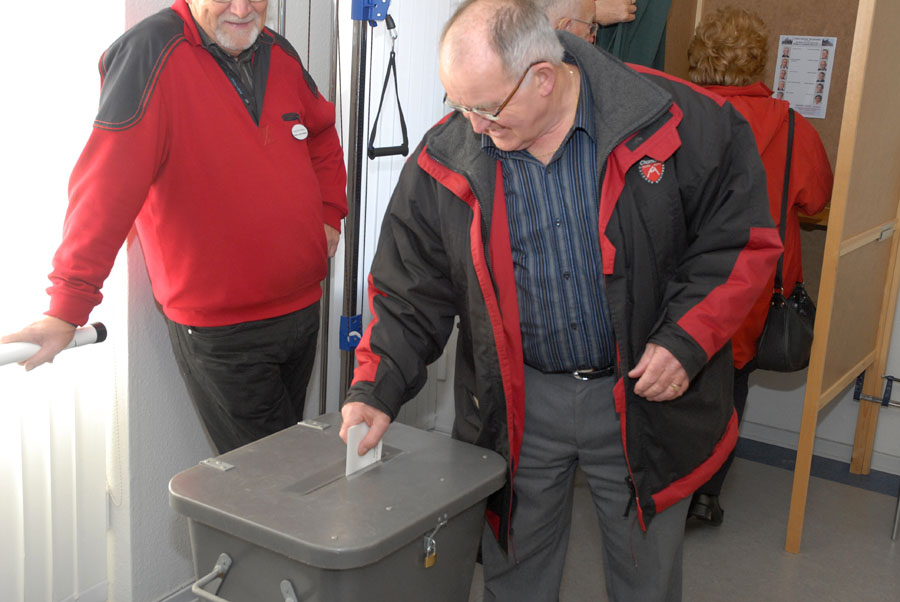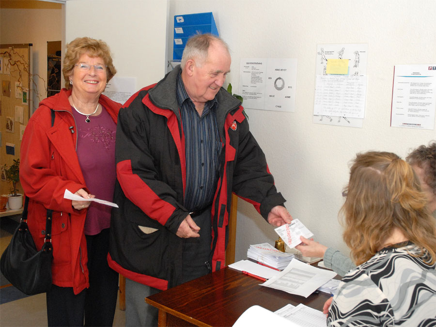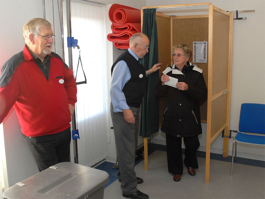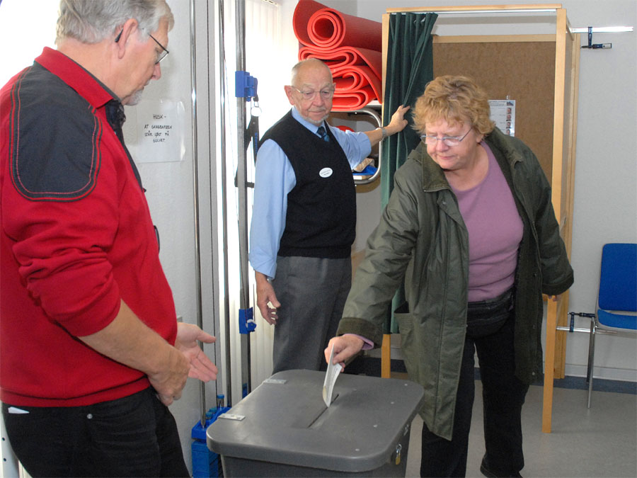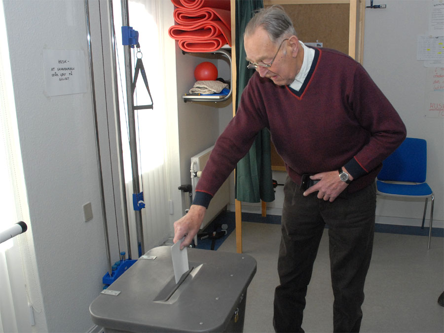 | Tirsdag den 6. november var der valg til brugerrådet på Lokalcenter Kildevang. Brugerrådet repræsenterer borgere over 60 år samt de førtidspensionister, der bor i lokalcentrets område og medvirker til at gennemføre kommunens ældrepolitik, ligesom det er Brugerrådet der styrer og tilrettelægger de mange arrangementer på Kildevang. Der er i Mårslet 854 stemmeberettigede i den nævnte gruppe, og ved middagstid havde hver femte afgivet deres stemme. Det svarer til 20%. Mårslet er kendt for en høj stemmedeltagelse ved valg til Brugerrådet. Ved det sidste valg for 2 år siden lå den samlede stemmeprocent på 39 og var det højeste i Århusområdet. For dem der mødte op omkring kl. 12, var der mulighed for en portion suppe og to tarteletter til en billig pris - og der var kaffe på kanden hele dagen. På grund af uregelmæssigheder i forbindelse med udsendelsen af stemmekortene, bliver resultatet først offentliggjort efter den 15. november. foto: ©2007 Jørgen Lauritsen