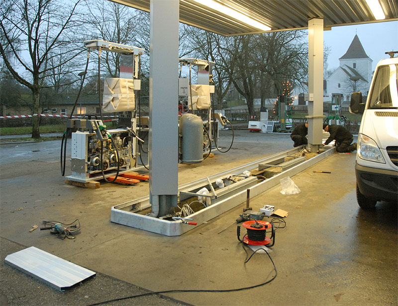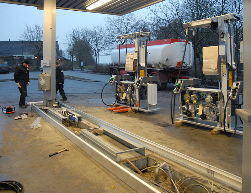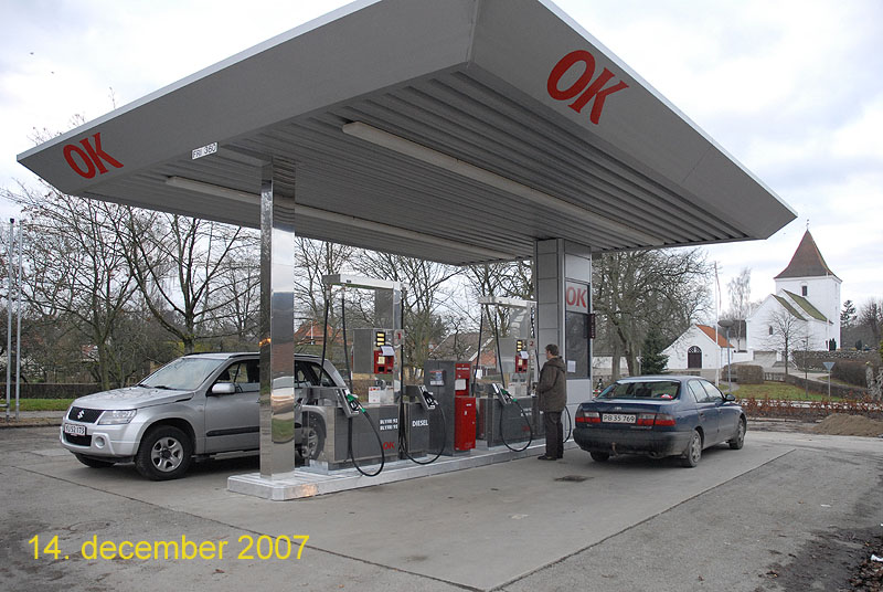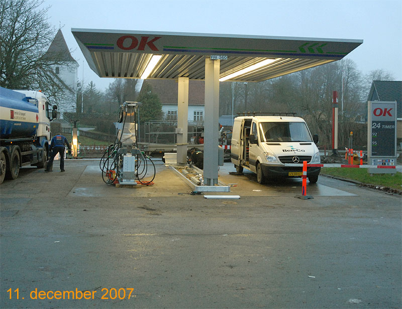 | Standerne ved OK-tanken er blevet udskiftet, og antallet af tappesteder er udvidet til 4 på hver side, ligesom der er kommet 4 kortlæsere og en ny seddelautomat. Tilkørselsforholdene "justeres", og der etableres en helt ny fodgængerovergang på Hørretvej. Dette arbejde forventes afsluttet først i det nye år. foto: ©2007 Jørgen Lauritsen
