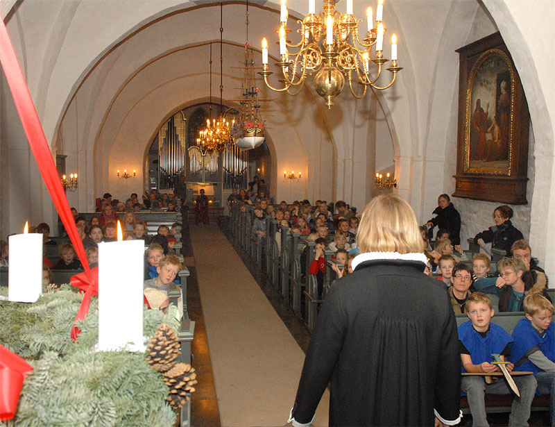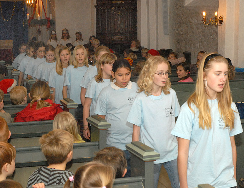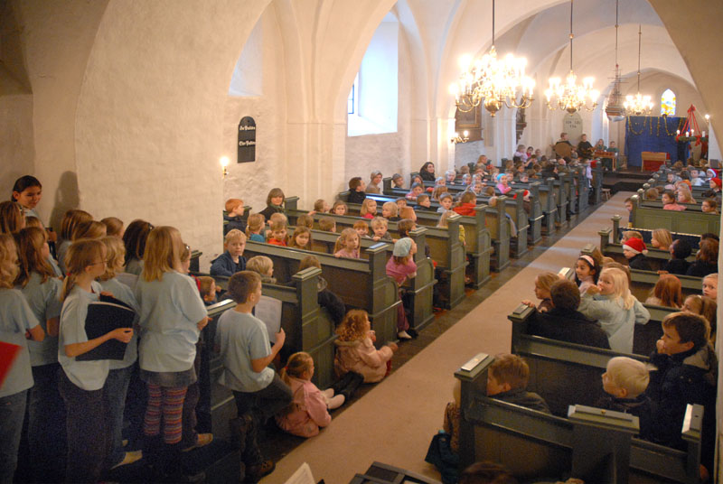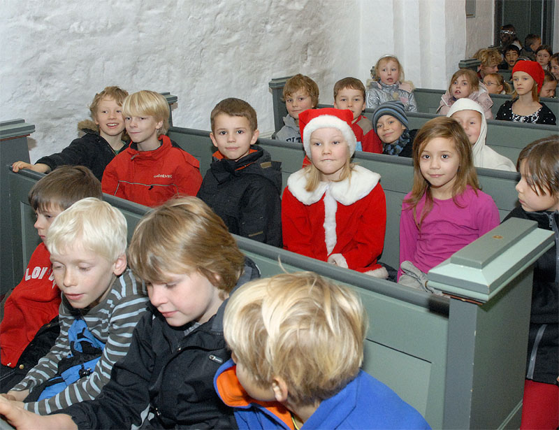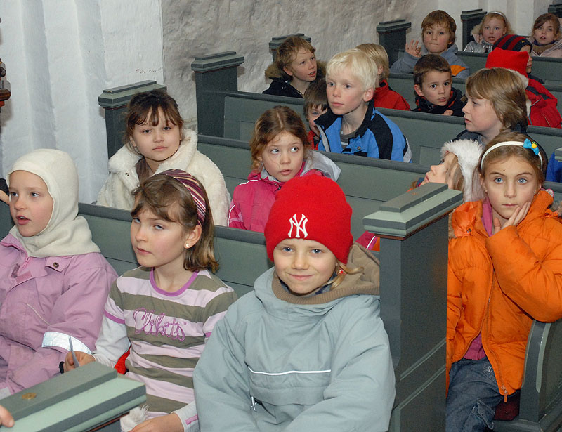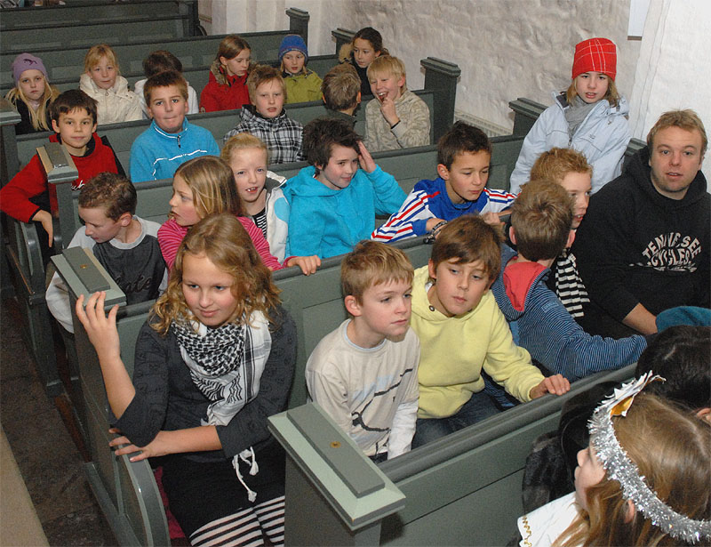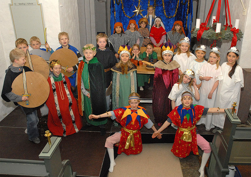 | En af de faste traditioner op til jul er, når minikonfirmanderne og Mårslet Kirkes Korskole opfører krybbespil i Mårslet Kirke. Torsdag den 20. december opførtes det for første gang, med stor succes for forældre og 0. klasserne og institutionsbørn i Mårslet, og ved juleafslutningen d. 21. dec. med to forestillinger for 1.- 4. klassetrin. Og nu er der så dømt juleferie! foto: ©2007 Jørgen Lauritsen