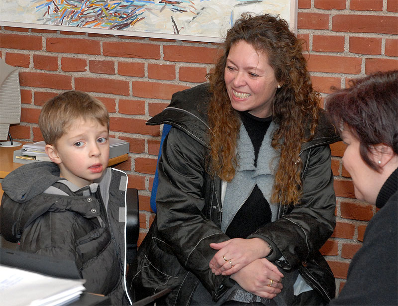 | Indskrivning til børnehaveklasserne fandt sted på Mårslet Skole den 15. og 16. januar. Efter indskrivningen fik de forventningfulde børn og deres forældre en rundvisning i de lokaler, som de kommende skoleelever skal være i, når de møder i skolen for første gang efter sommerferien. Billederne er fra tirsdag den 15. januar, hvor der blev indskrevet 48 af de omkring 80 børn, der forventes at skulle begynde i børnehaveklasserne. Det er år sidste gang, det er frivilligt, for i 2009 bliver børnehaveklasserne obligatoriske. foto: ©2008 Jørgen Lauritsen
