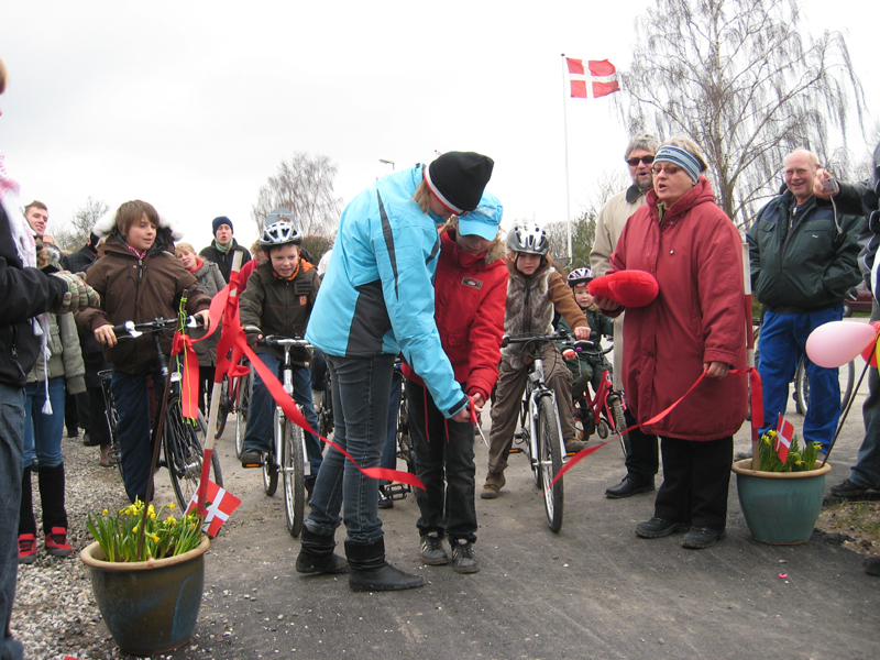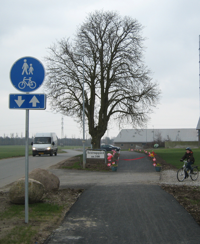 | Testrup fejrede den længede ventede og stærkt forsinkede sti mellem Testrup og Mårslet til cyklister, fodfolk, skatere og andet godtfolk, der for eftertiden kan færdes sikkert i al slags vejr mellem de to byer. foto: ©2008 Kurt Søe