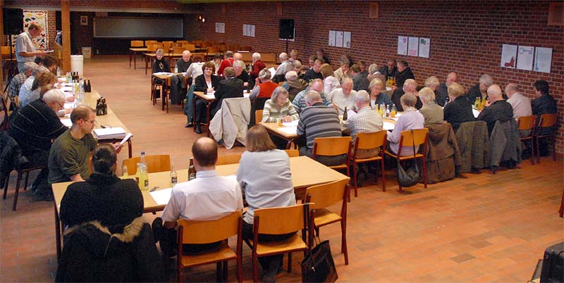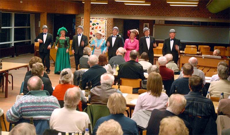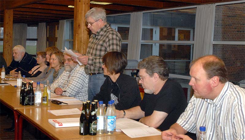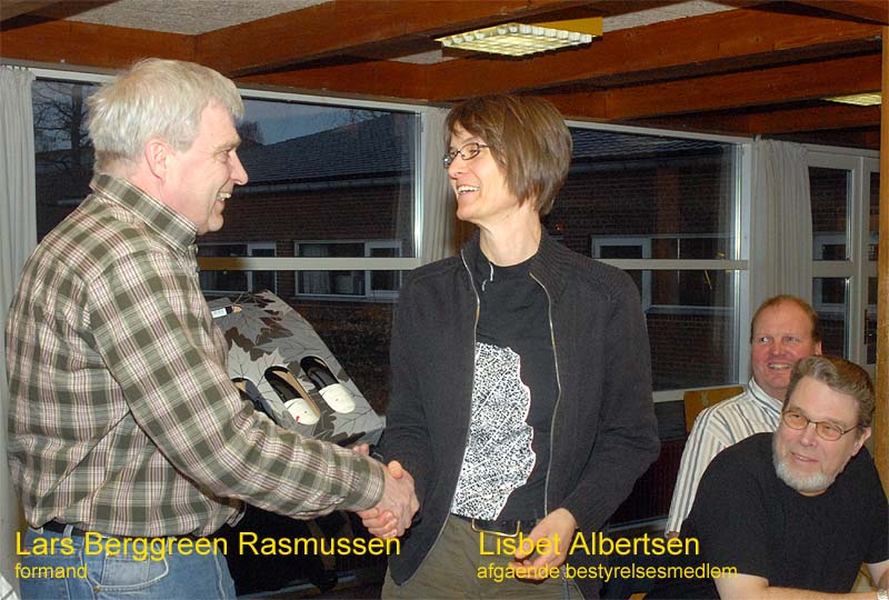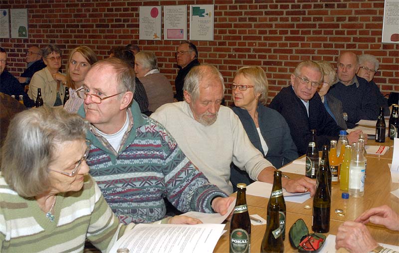 | Mårslet Brugsforenings årlige generalforsamling fandt sted den 3. april i Mårslet Skoles kantine. Formanden, Lars Berggreen Rasmussen, fastslog at 2007 blev et rigtigt godt år for Brugsen i Mårslet, og uddeler Jesper Nielsen kunne fremlægge det bedste regnskab i foreningens historie. Fra OK-tanken sælges der 1,5 mill. liter brændstof om året, og sponsoraftalen med TMG fortsætter. Det blev nævnt at postbutikken fra den 4. april flytter ind i Brugsen. Eneste ændring i bestyrelsen blev, at Lisbet Albertsen har valgt at træde ud, og nyt medlem blev Anne Mette Bay Bjørn, der for 1½ år siden er flyttet til Langballe. Hun er læge på Skejby Sygehus og mor til tre børn. Efter ½ time var den ordinære generalforsamling forbi, og så blev der spillet op til fornøjelig underholdning med gruppen "De Gode Gamle Dage". Slutteligt var Brugsen vært for de omkring 45 deltagende medlemmer ved et let traktement med smørrebrød. foto: © 2008 Jørgen Lauritsen