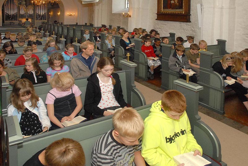 | Den årlige salmesangsdag for 4. klasserne fandt sted i Mårslet Kirke onsdag d. 7. maj. Efter de musikalske udfoldelser var der is til alle i Sognehuset. foto: ©2008 Jørgen Lauritsen