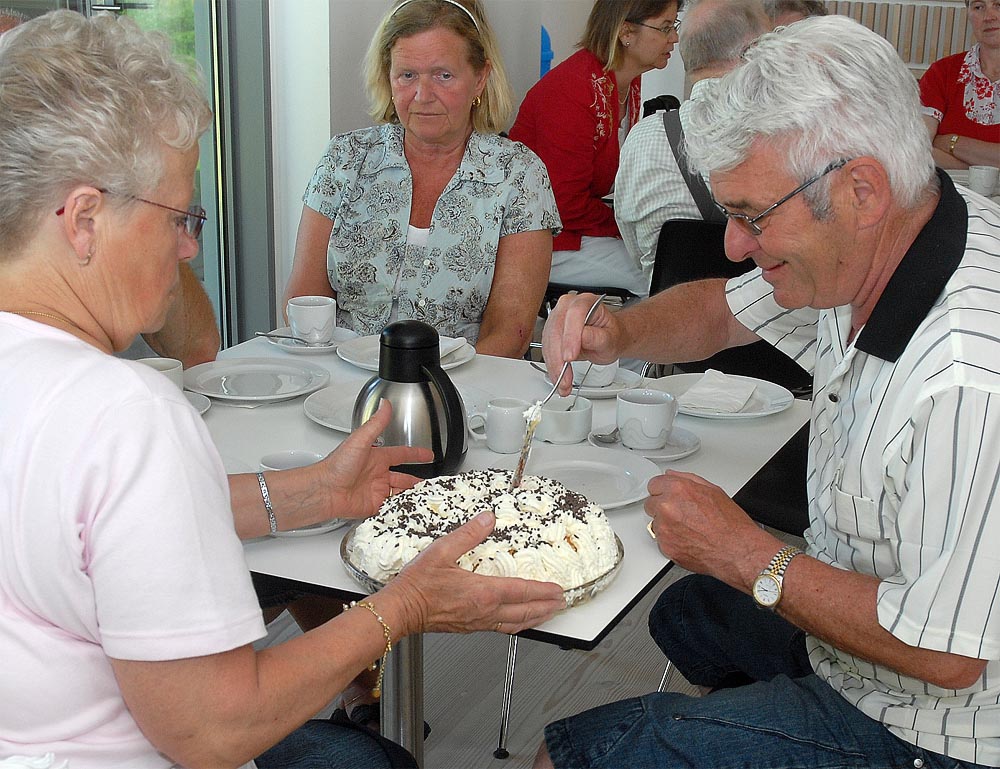Eftermiddagskaffe med tilbehør på Vildmosecentret, før turen gik tilbage til Mårslet.