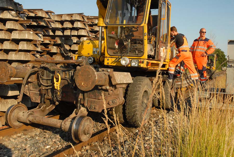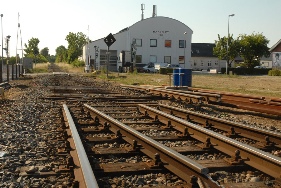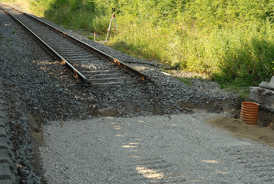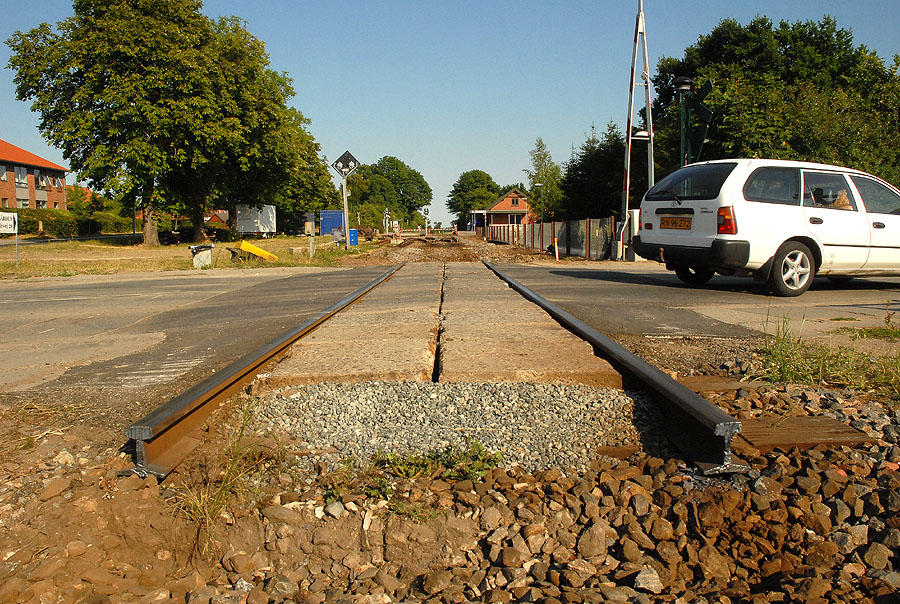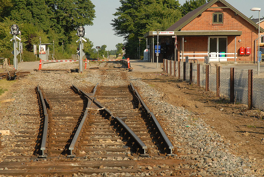 | Det er et ikke helt almindeligt syn, der møder én ved Mårslet Station i denne tid, men om små to måneder er alt på plads igen - og så med helt nye skinner. foto: © 2008 Jørgen Lauritsen