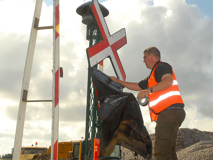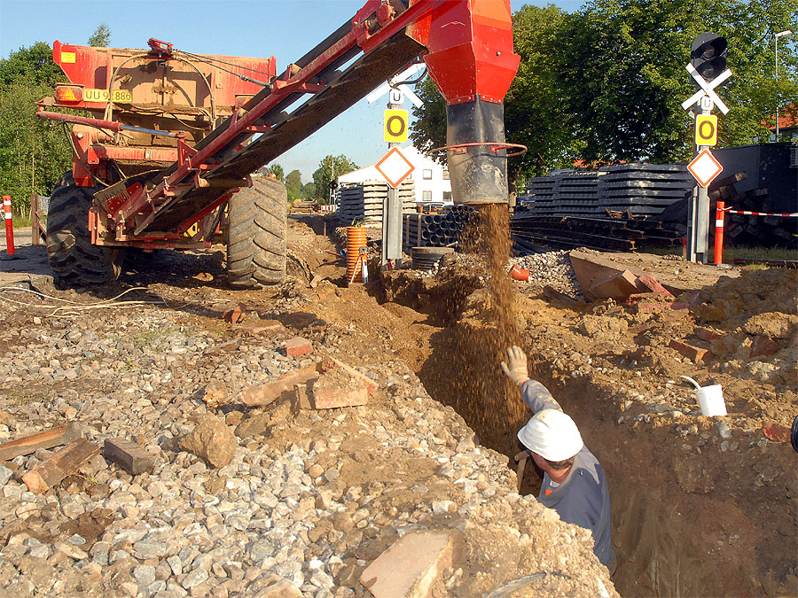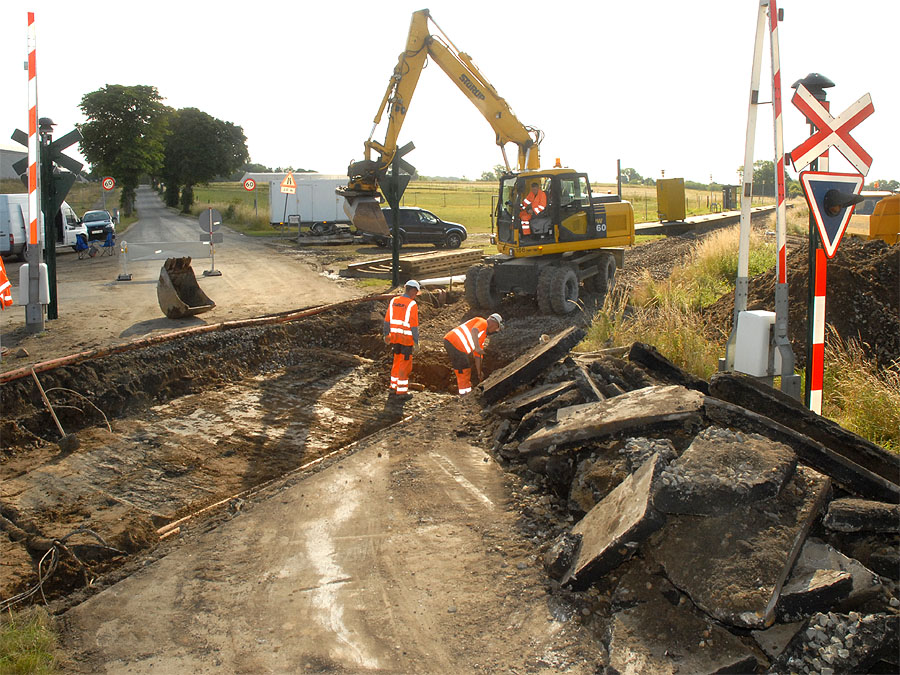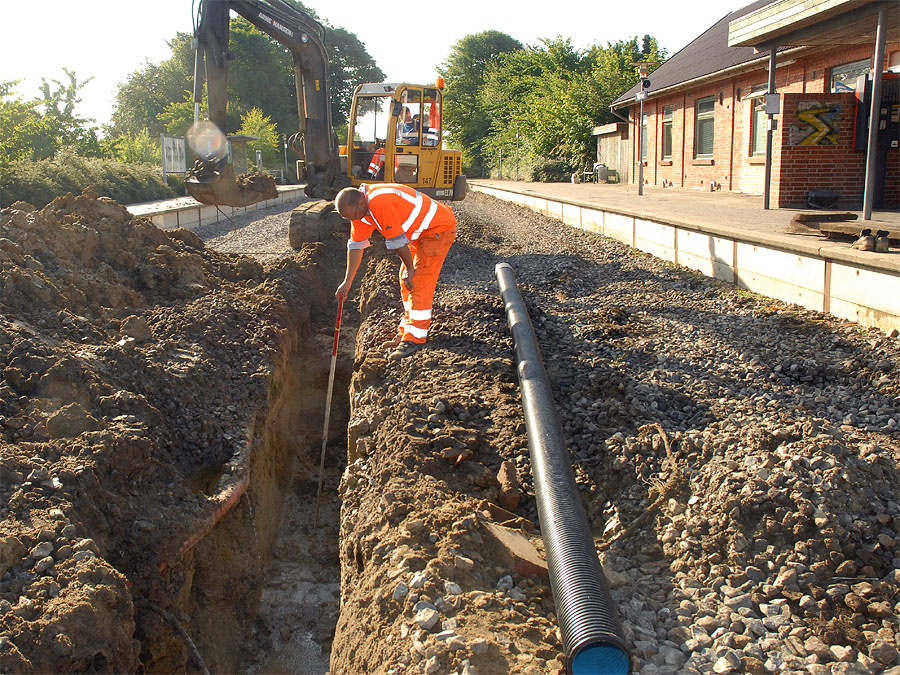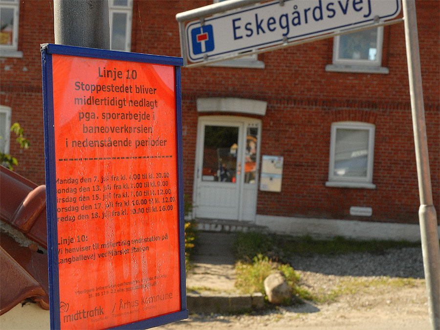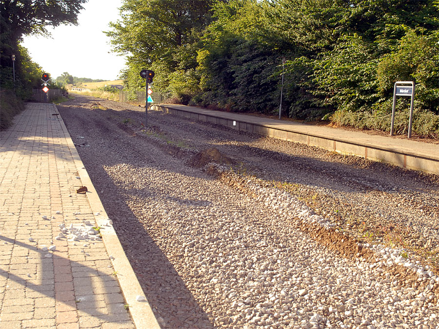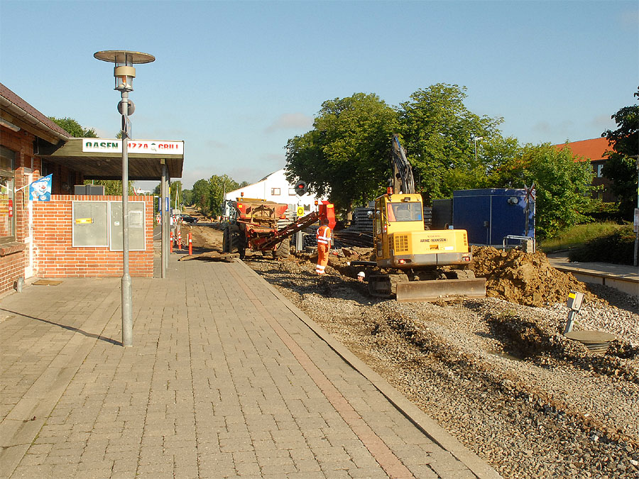 Bybilledet i Mårslet er i denne tid overalt præget af udskiftning af skinnerne på Odderbanen.