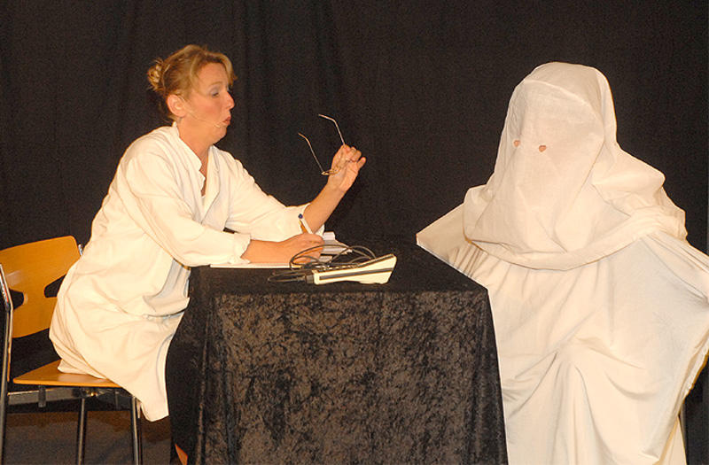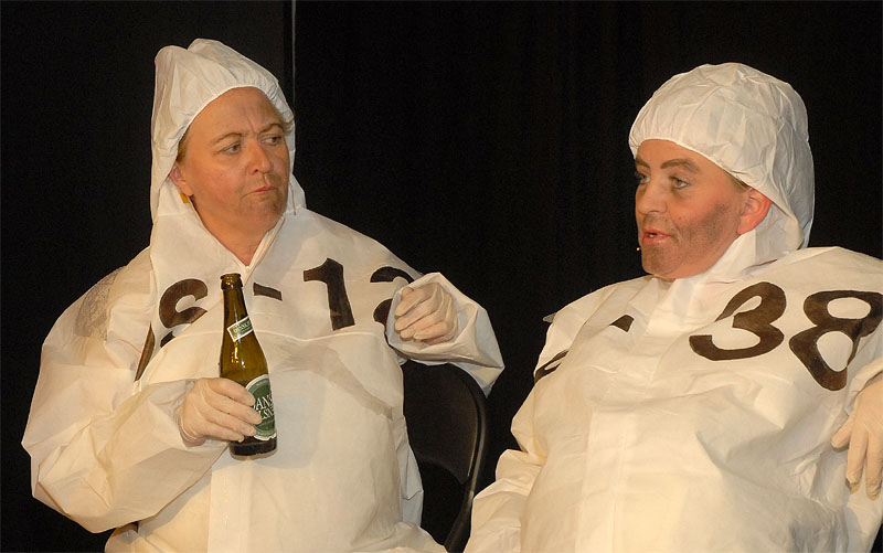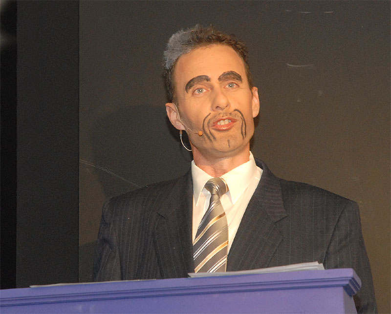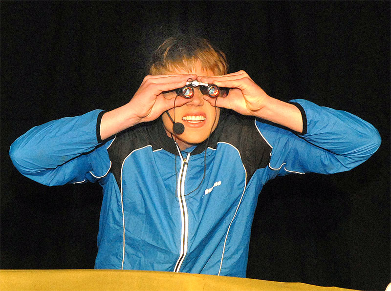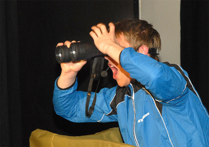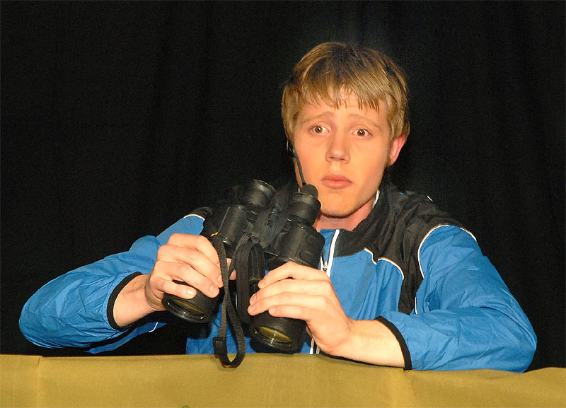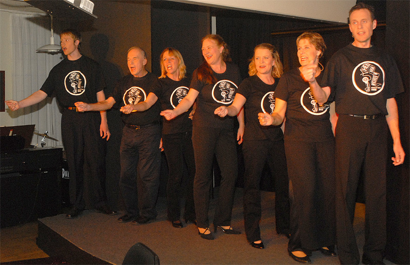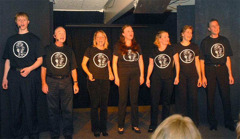 | I aften og de næste tre aftener kører årets mårsletrevy "Helt hen i vejret"... over de skrå brædder for fuldt udsolgte huse i Borgerhuset. Det er en forrygende cocktail af sprudlende og morsomme indslag med en fin fornemmelse for det aktuelle, både lokalt og på landsplan. Godt gået af vor lokale teatergruppe "105 gr. Blandet". Billederne er fra generalprøven den 30. september. foto: ©2008 Jørgen Lauritsen Reklame efter billederne.