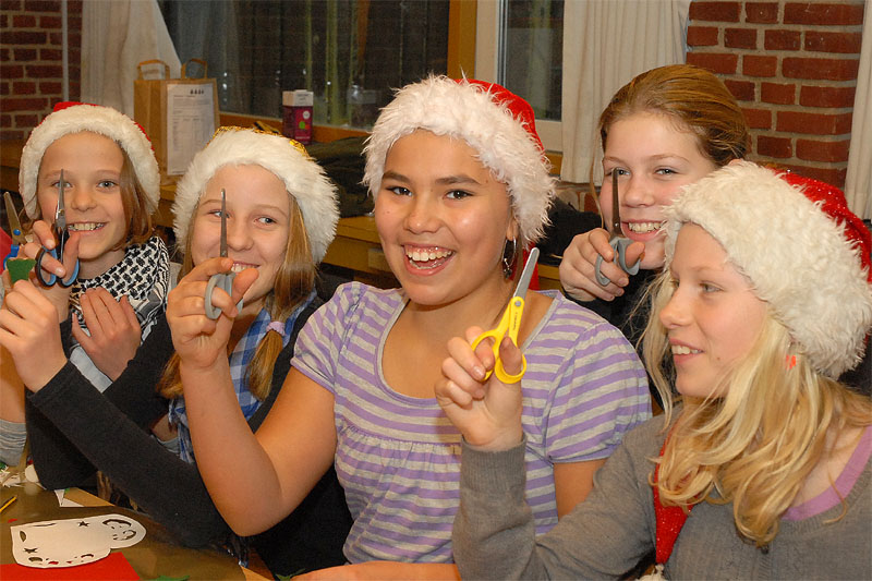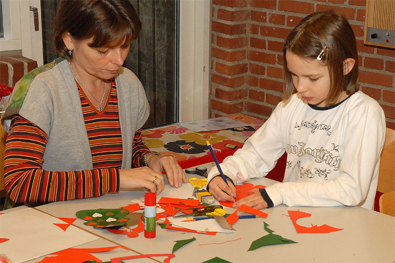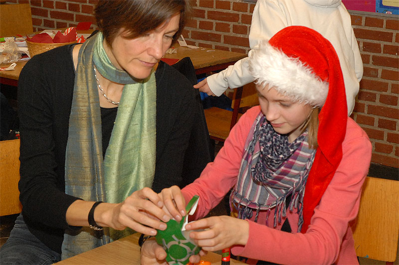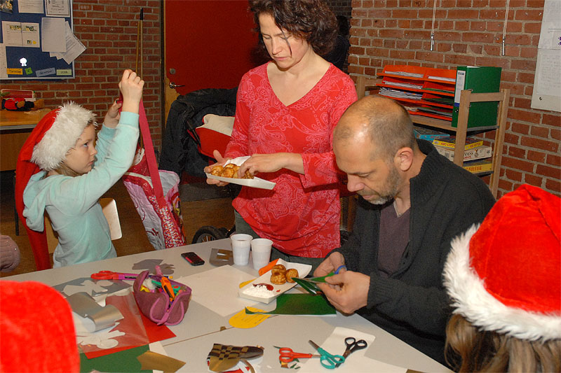 | Der var gang i sakse og limstifter på Mårslet Skole, fredag den 5. december. Forældre og bedsteforældre var inviteret med til denne hyggelige julemånedstradition. Formiddagen sluttede med et rigtigt nissebal i hallen. foto: ©2008 Jørgen Lauritsen