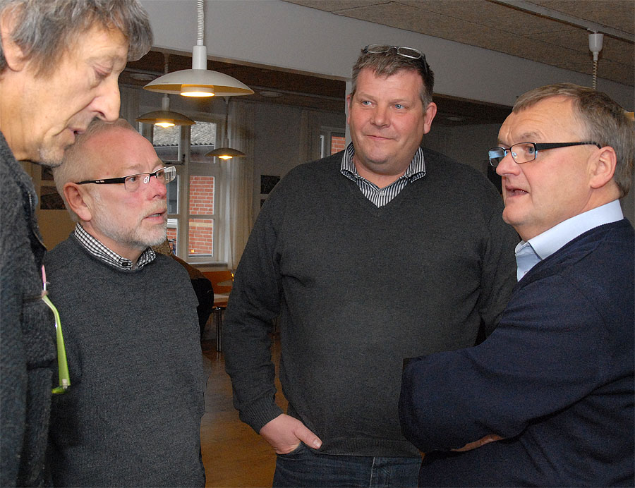 Anders Errboe, næstformand i Mårslet Sogns Lokalhistoriske Forening, Jakob Lind, Jens Thomsen og Per Enevoldsen, leder af Mårslet Egnsarkiv.