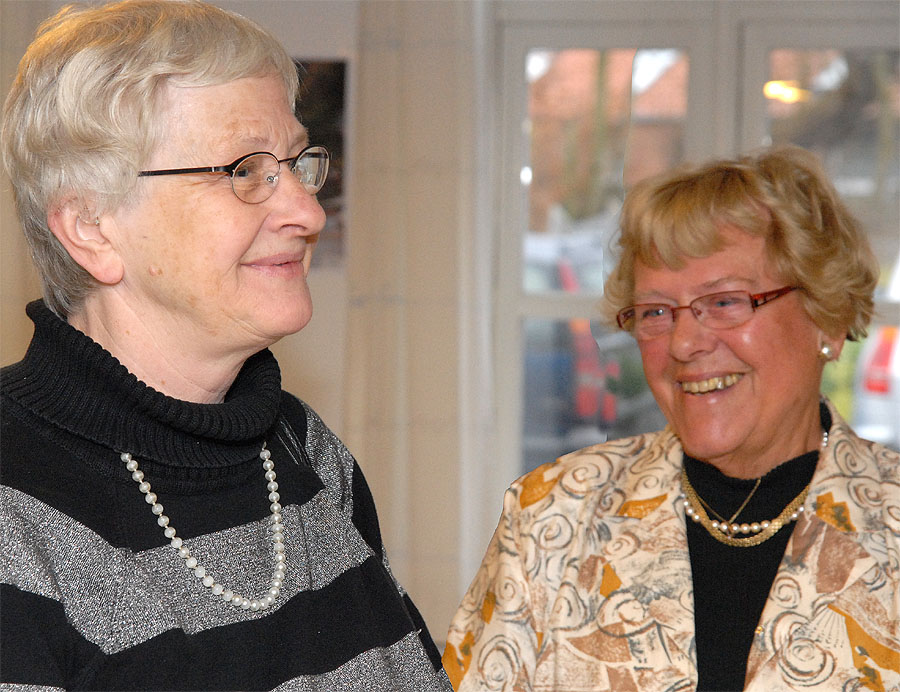 Hanne Davidsen, sognepræst og Else Svendsen, formand for Mårslet Sogns Lokalhistoriske Forening.