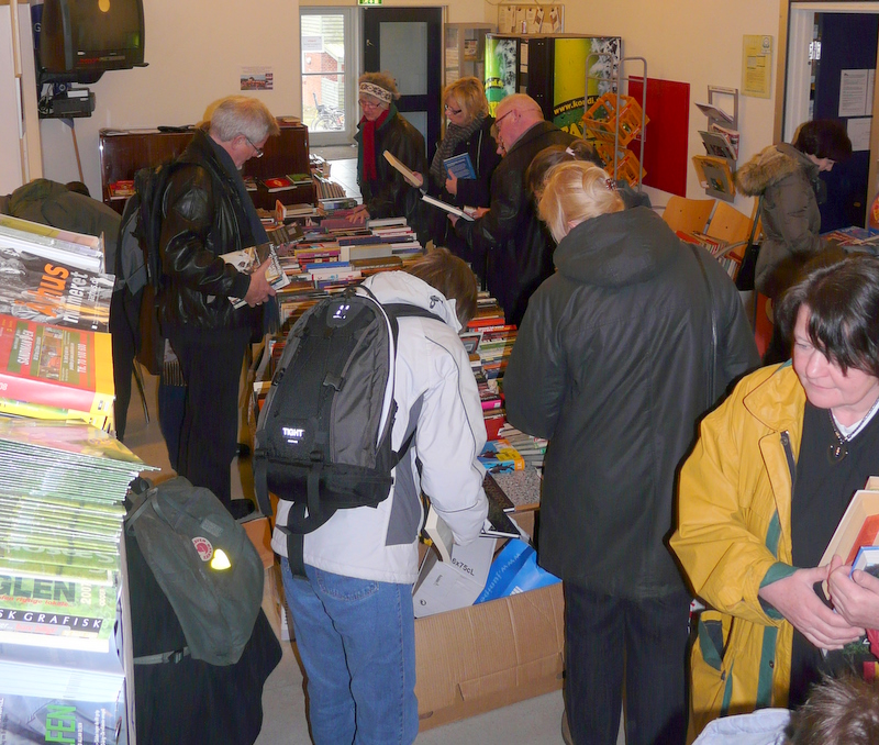| Der blev solgt flere hundrede kilo bøger, da der forleden var brugt-bog-salg i HalHuset. Hele HalHuset var fyldt med spændende bøger, der var blevet foræret til formålet af Mårslettere. De mange besøgende fik underholdning til rigtig mange timer for små penge og støtter samtidig et godt formål, nemlig MultiHal-projektet i Mårslet. Det næste støttearrangement er allerede den kommende weekend, hvor der er påskeægge-skattejagt for de yngste (se nærmere på webbens kalender). foto: ©2009 Kent Pedersen