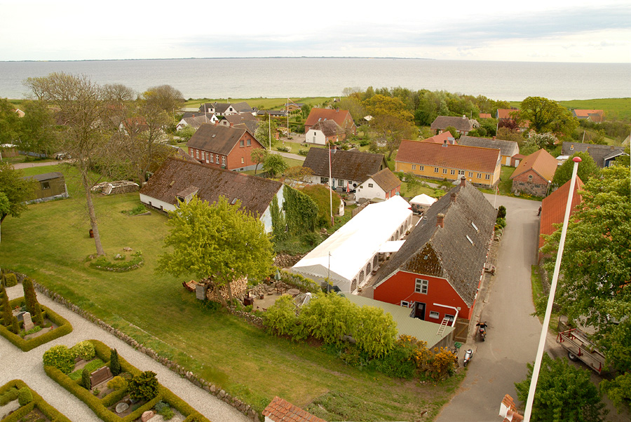 Tunø kirkes tårn fungerer som fyrtårn. Fra toppen er der en fin panoramaudsigt over hele øen.