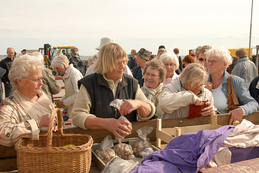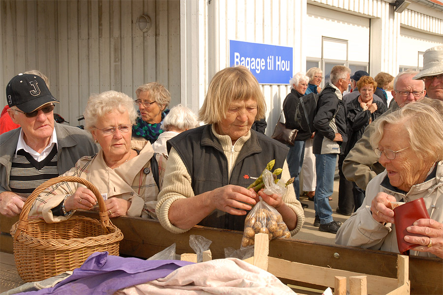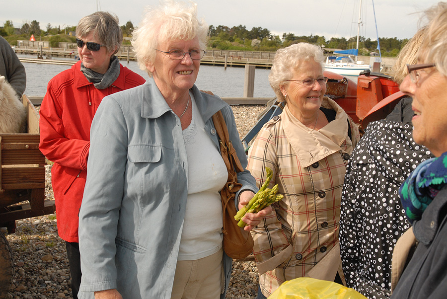 Før turen går tilbage til fastlandet, er der rig mulighed for at købe friske asparges og kartofler på havnen.