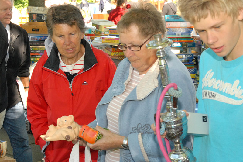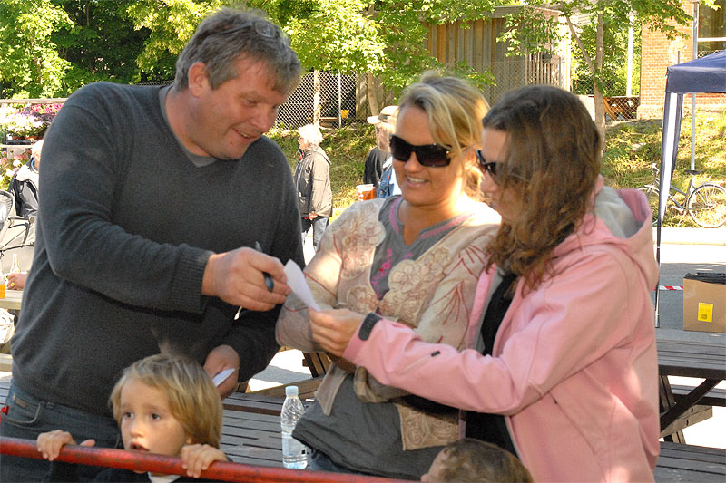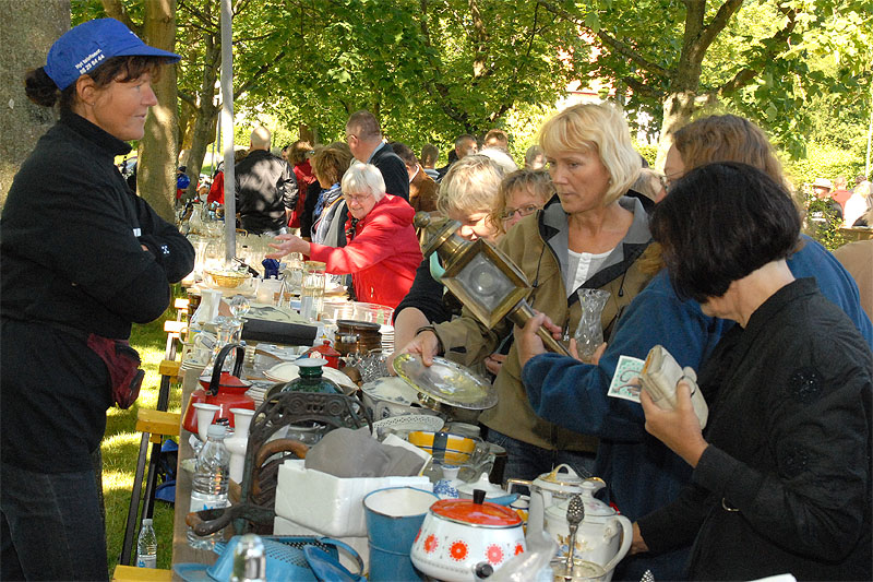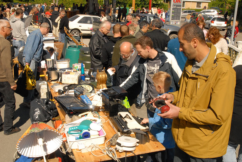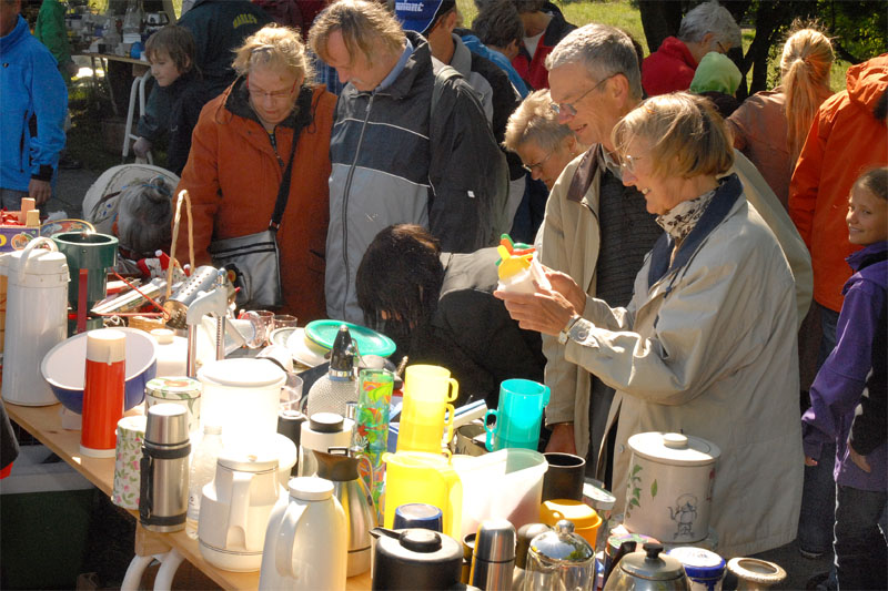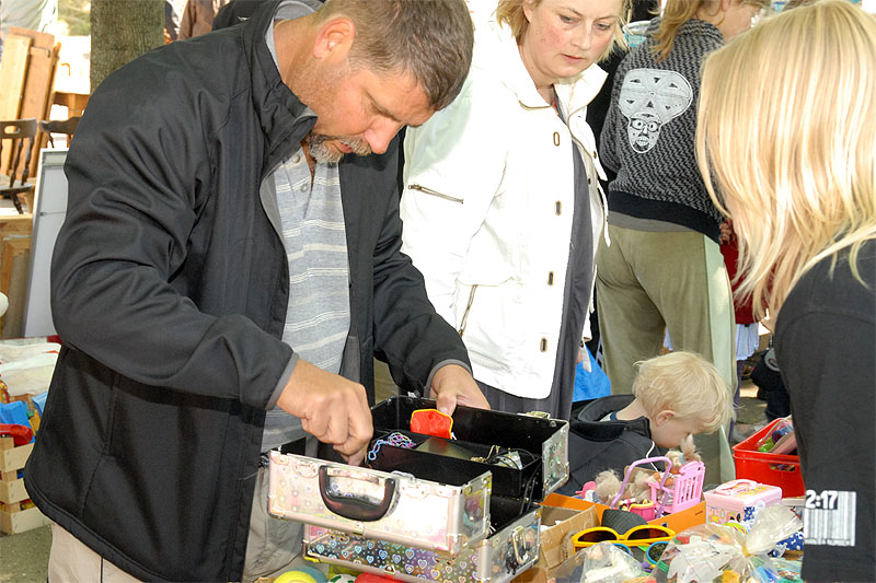 | TMG's årlige, traditionsrige loppemarked ved OK tanken, var begunstiget af rigtig godt vejr og "lopper" af en kvalitet der tilsyneladende lå lidt højere end tidligere. Der blev handlet godt ved alle boderne, købelysten var stor og der blev gættet på grisens vægt, der i år også lå lidt højere. Der var to heldige - eller dygtige vindere, Henrik Knudsen og Bent Arndt, der gættede rigtigt, 103,5 kg, og som så får hver sin halvdel. Grisen alene indbragte 6.580 kr. Det samlede resultat var som sidste år på godt 60.000 kr. TMG takker alle for en god indsats. foto: ©2009 Jørgen Lauritsen