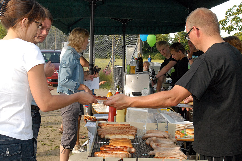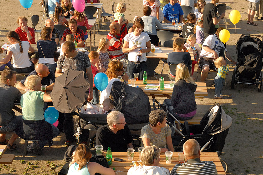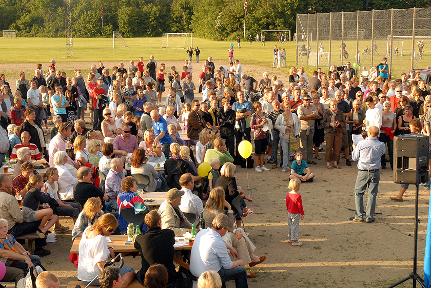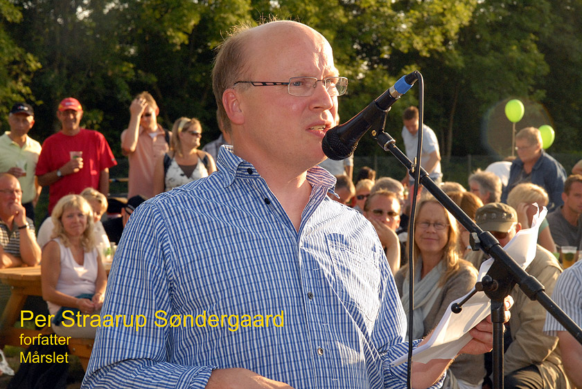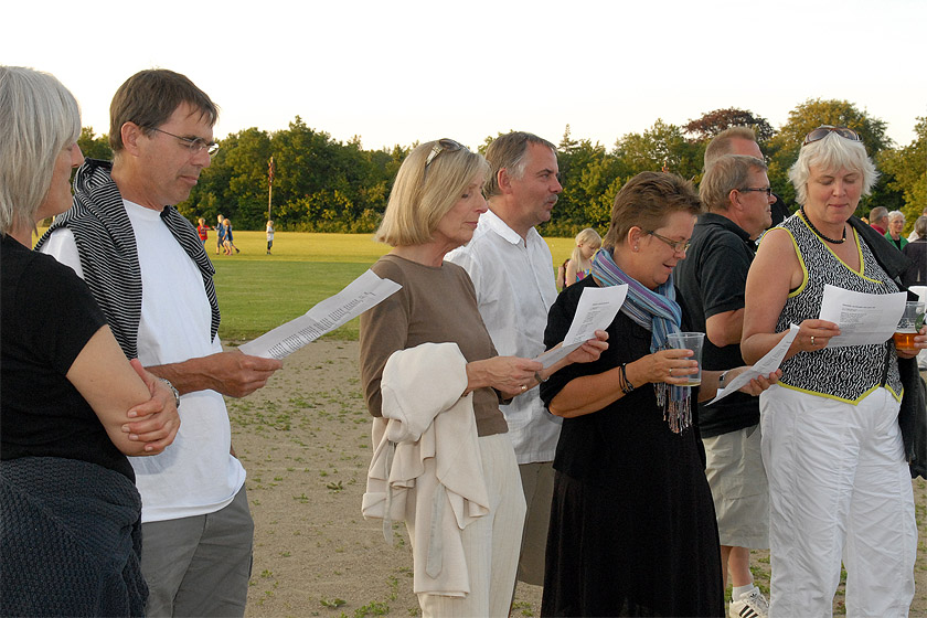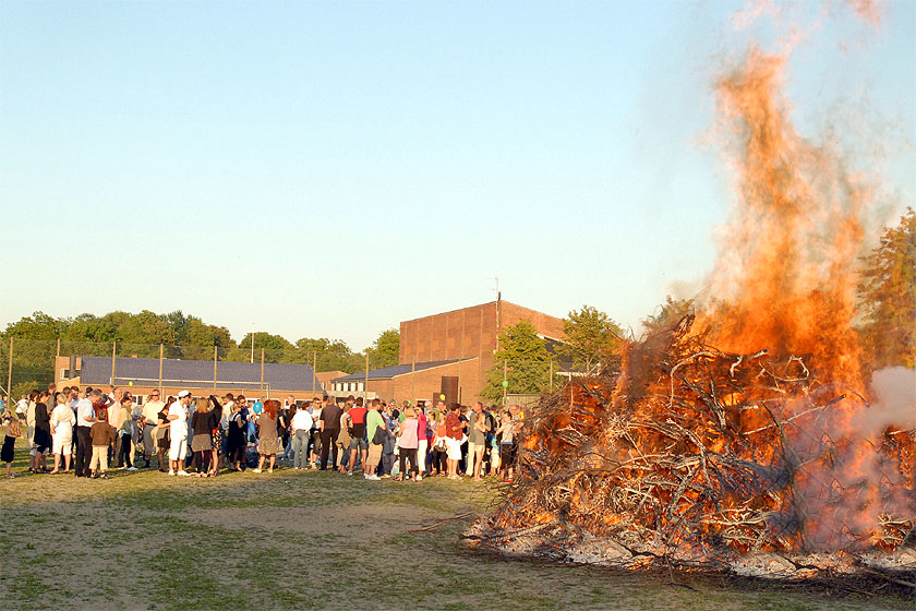 | Sct. Hans aften i Mårslet, arrangeret af multihal.nu, var som sædvanlig en rigtig folkefest på boldbanerne bag Hal Huset. Og i år blev det en rigtig lun sommeraften begunstiget af godt vejr med sol, klar blå himmel og ingen vind. Før heksen i toppen af bålet blev sendt afsted til Bloksbjerg, blev der overrakt kontante pengepræmier til støtte for multihalprojektet: Sofie overrakte på vegne af Mårslet Run & Walk 1.020 kr., der er overskuddet fra de startpenge, der kom ind ved sidste års løb og Poul H. Poulsen kunne så lægge 10.000 kr.fra Mårslet Fællesråd oveni Båltalen blev holdt af Per Straarup Søndergaard og var betragtninger fra heksens tanker og meninger om Sct. Hans aften og bålbrænding. Og mens bålet brændte, og solen gik ned blev midsommervisen sunget. foto: ©2009 Jørgen Lauritsen