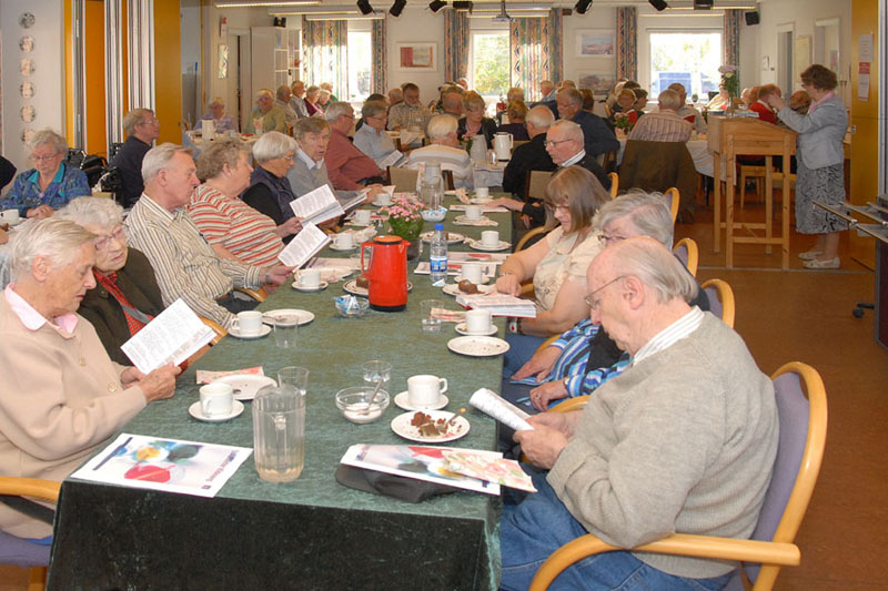 | Tirsdag den 6. oktober var der opstillingsmøde til det nye brugerråd på lokalcenter Kildevang. Der var en overvældende interesse og fyldt op til sidste plads i caféen, hvor 90 mårslettere af den ældre generation havde indfundet sig. Formanden, Hanne Torp, redegjorde for det store frivillige arbejde, som brugerrådet gennem de sidste to år har udført for de ældre på Kildevang. Brugerrådet består af 9 personer, der er valgt for en 2-årig periode og på mødet blev der opstillet 12 kandidater. Valget finder sted på Kildevang tirsdag den 3. november. Efter mødet blev der - traditionen tro - serveret gule ærter med flæsk og pølser. foto: ©2009 Jørgen Lauritsen