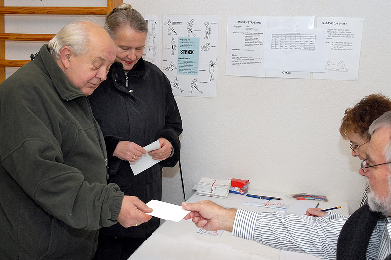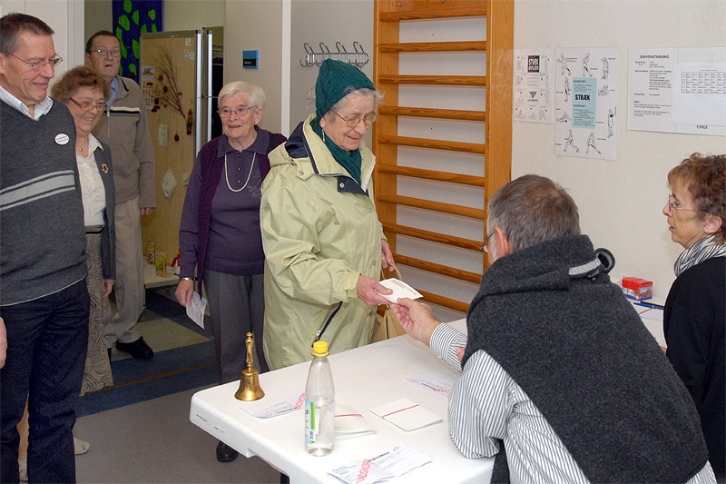 | Der var fra starten kl. 10 tirsdag den 3. november stor tilstrømning til valget af det nye Brugerråd på Lokalcenter Kildevang. Stemmeprocenten blev lidt lavere end sidste gang - 29,7%, mod 35,2% i 2007 hvor Kildevang havde den højeste i hele Århus kommune. Stemmeafgivningen på de enkelte kandidater fordelte sig således: Grethe Sørensen (182) - Hanne Torp (147) - Else Andersen (121) - Henry Lander Nielsen (89) - Asger Poulsen (79) - Kresten Iversen (63) - Villy Pedersen (53) - Bent Milan (47) - Ellen Jensen (32) Suppleanter: Henning Jensen (28) - Jytte Kalmeyer (15) - Erna Kirkeby (12) Brugerrådet er valgt for en 2-årig periode. foto: ©2009 Jørgen Lauritsen