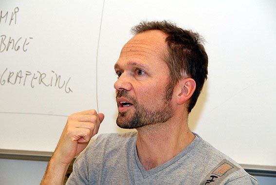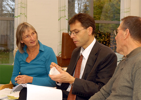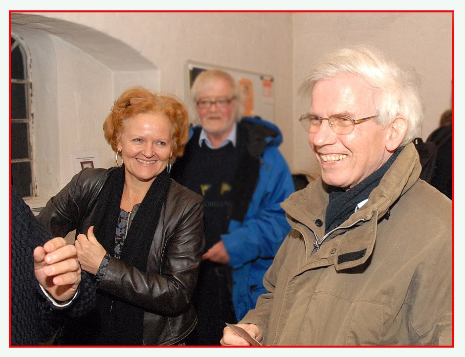Forfatteren, den tyske professor og teolog Gerd Theißen, havde taget turen fra Heidelberg i Tyskland til Danmark for bl.a. at overvære opførelsen af Galilæerens Skygge i Mårslet Kirke. Her ankommer han fredag aften, den 20 november, sammen med dramatikeren Ann Sofie Oxenvad. Herunder en del af den store medarbejderflok, der stod bag opførelsen, fotograferet efter sidste forestilling den 22. november.