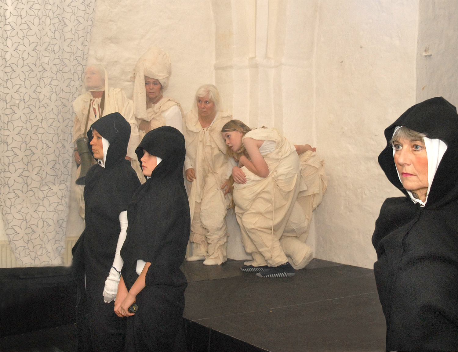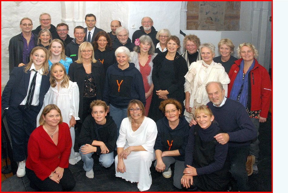 En del af skuespillerstaben før det går løs.