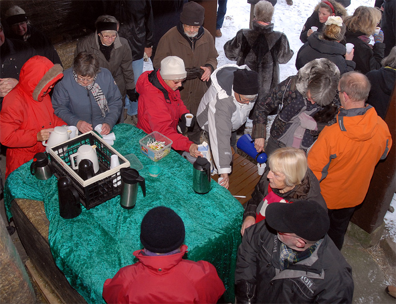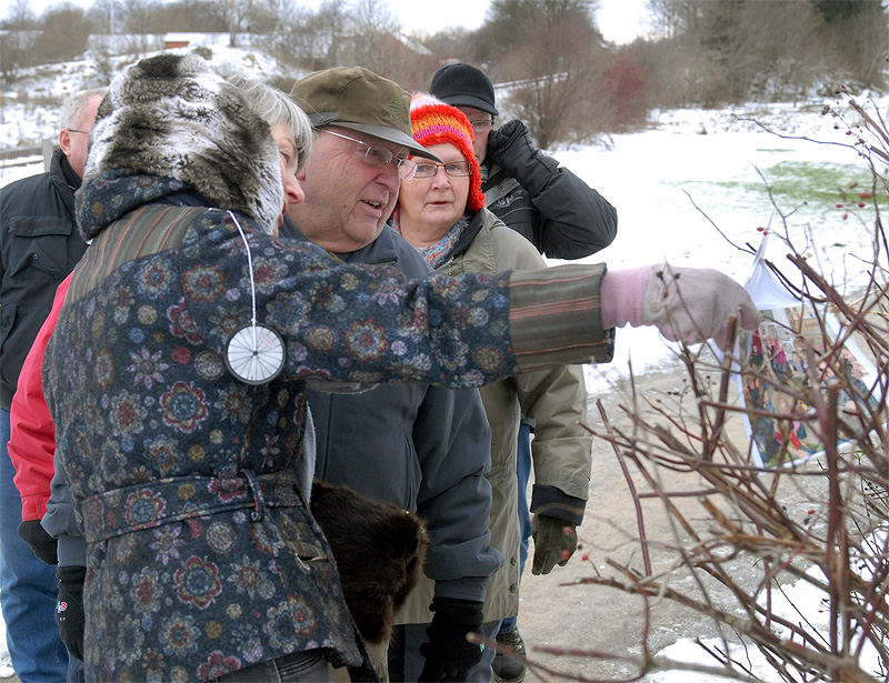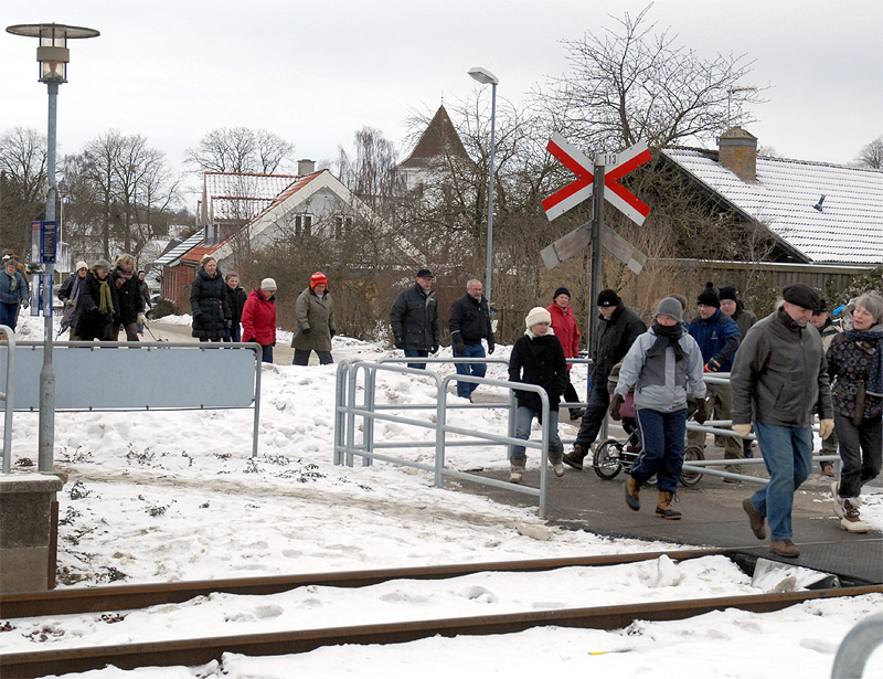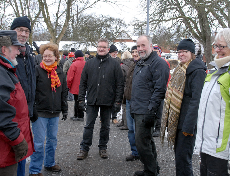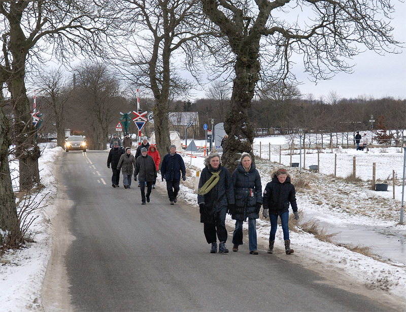 | Den 1. januar om eftermiddagen er nytårsluntningen for mange blevet en fast tradition oven på jul og nytår. Således også i år, hvor omkring 70 mårslettere mødtes ved OK-tanken for at tage en travetur til Vilhelmsborg, hvor kaffen og en dram ventede. Et nyt initiativ: Under luntningen kunne opleves årets gang i Mårslet, hvor billeder fra begivenheder gennem 2009 var hængt op på ruten. foto: ©2010 Jørgen Lauritsen