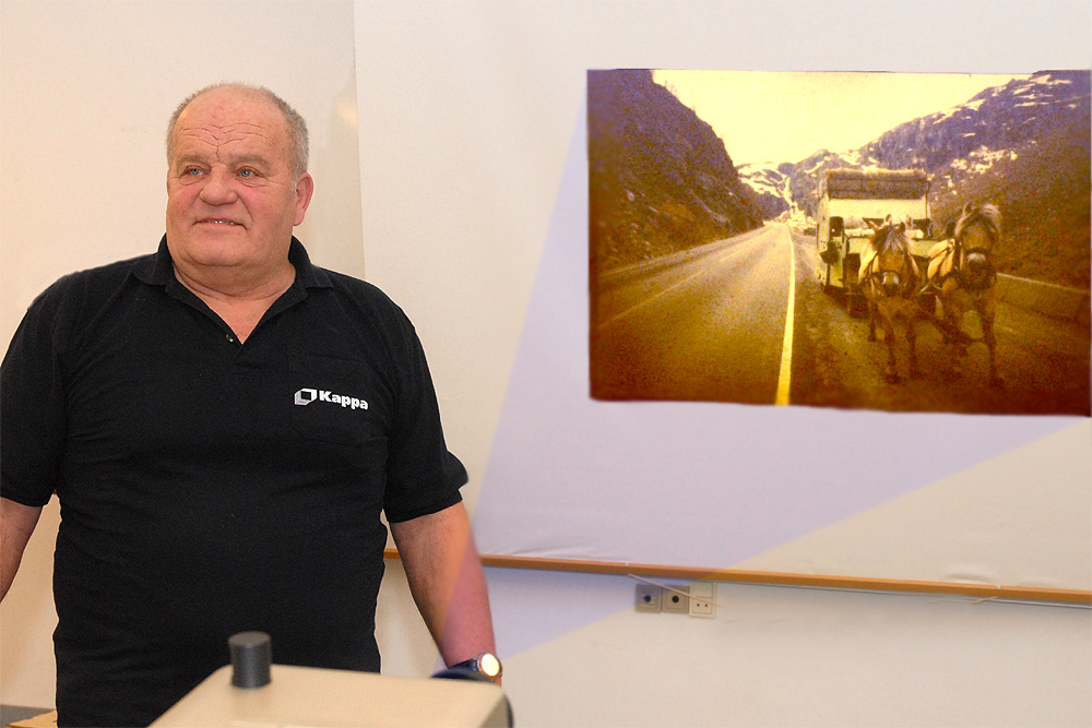 | Per Bové fra Jelling udlevede en mangeårig drøm, da han spændte sine to nordbakker for en campingvogn og drog mod det europæiske fastlands nordligste punkt, Nordkap. I Hyggeklubben fortalte han torsdag d. 14. januar om turen under titlen Med nordbakker til Nordkap. foto og tekst: ©2010 Jørgen Lauritsen
