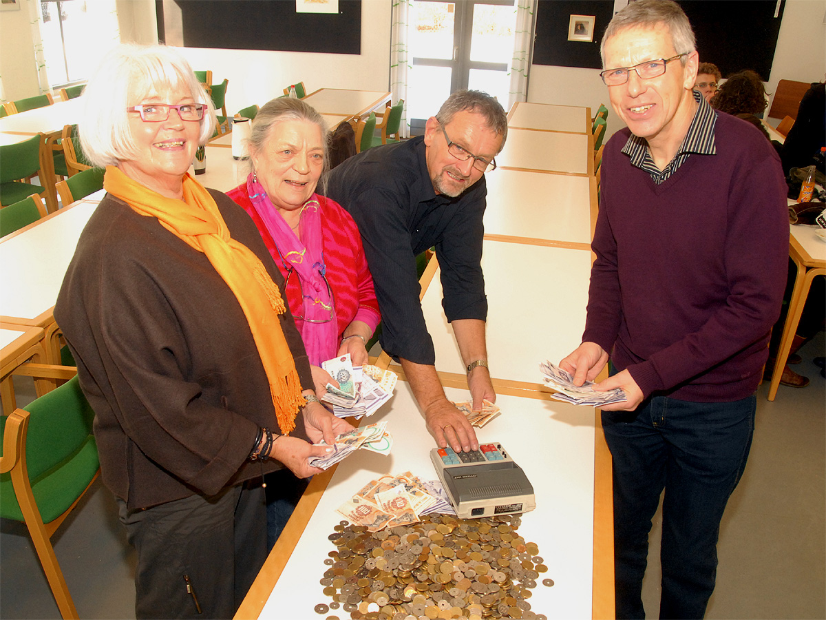 Det var en stolt sognekoordinator, Knud Lunderskov (th), der sammen med nogle af de mange frivillige søndag eftermiddag kunne gøre regnskabet op efter indsamlingen i Mårslet
