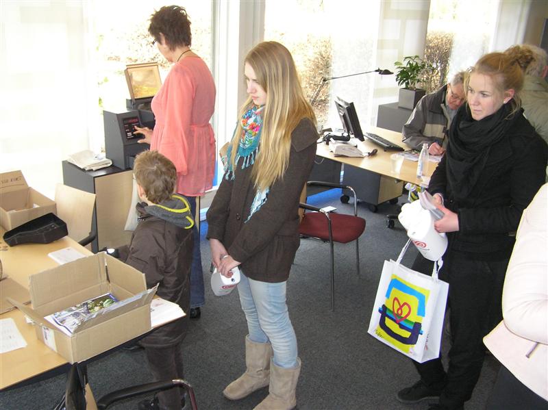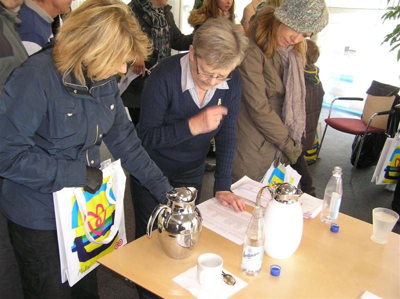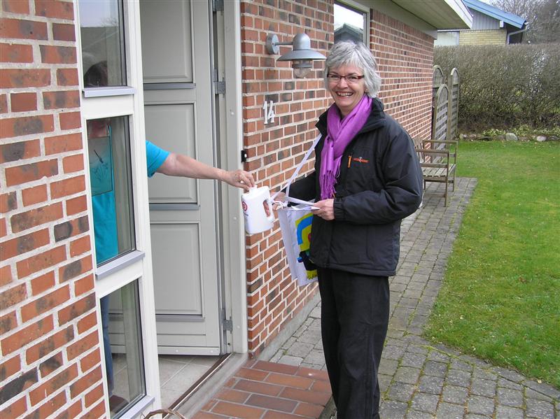 | 33 indsamlere mødtes i Nordea, hvor Lis Margrethe og Erik tog imod med kaffe og te, og hertil fik vi dejlige rundstykker sponseret af bager Makaros. Vel tilbage efter turen ude i den kolde forårsvind fortalte indsamlerne, at de var blevet godt modtaget, men desværre var mange ikke hjemme. Lis Margrethe og Poul talte bøtter op, og medens indsamlerne ventede på resultatet, nød de en sodavand sponseret af REMA 1000 i Tranbjerg, og til alle var der desuden et skrabelod fra Stena Line. Det samlede indsamlingsresultat blev igen over al forventning - kr. 42.630,- en markant stigning i forhold til sidste år. Tak til indsamlerne for den gode indsats - og også en tak til beboerne i indsamlingsområdet for den positive modtagelse. Tak til Nordea - Lis Margrethe og Erik. Jeg håber, vi ses til næste års indsamling søndag den 3. april 2011. Ane-Mie Nielsen foto: ©2010 Jesper Andersen